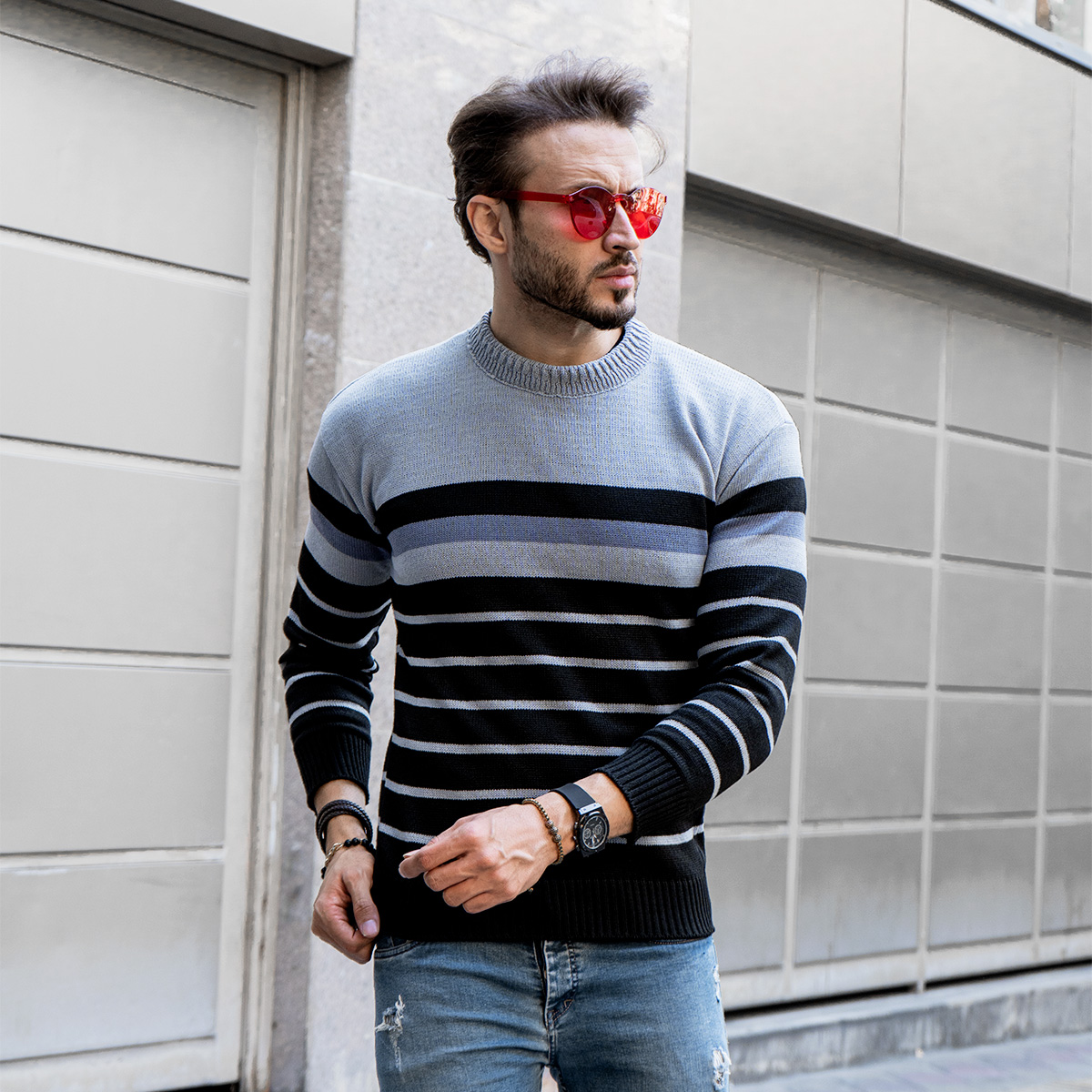 رنگبندی :راه راه مشکی طوسی
