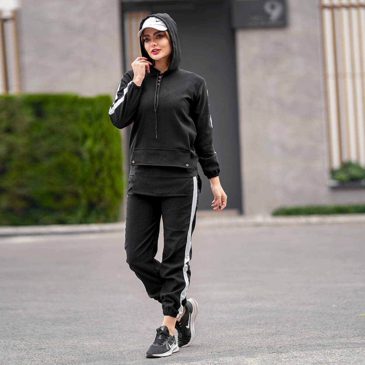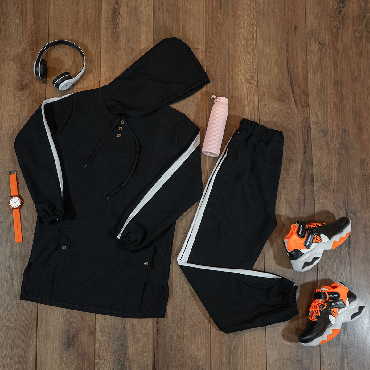 ست هودی شلوار جیب جلو مشکی دخترانه مدل Erina