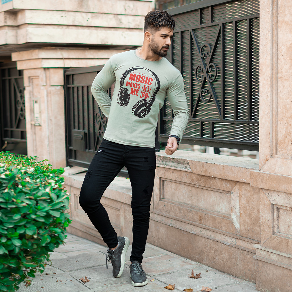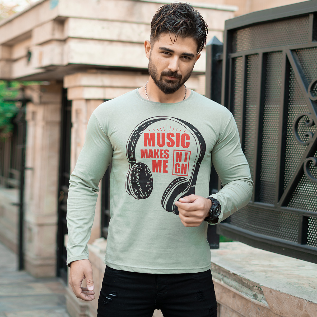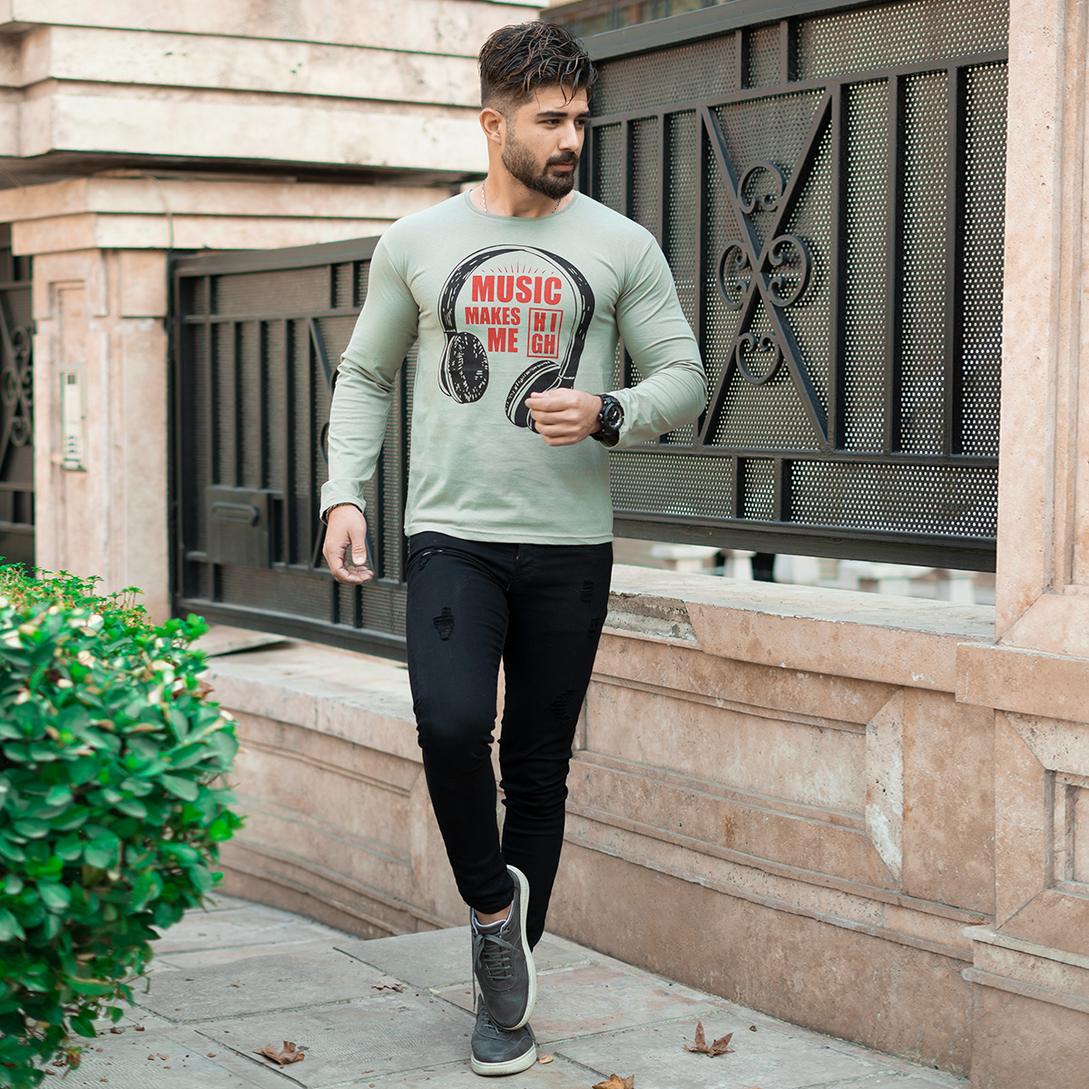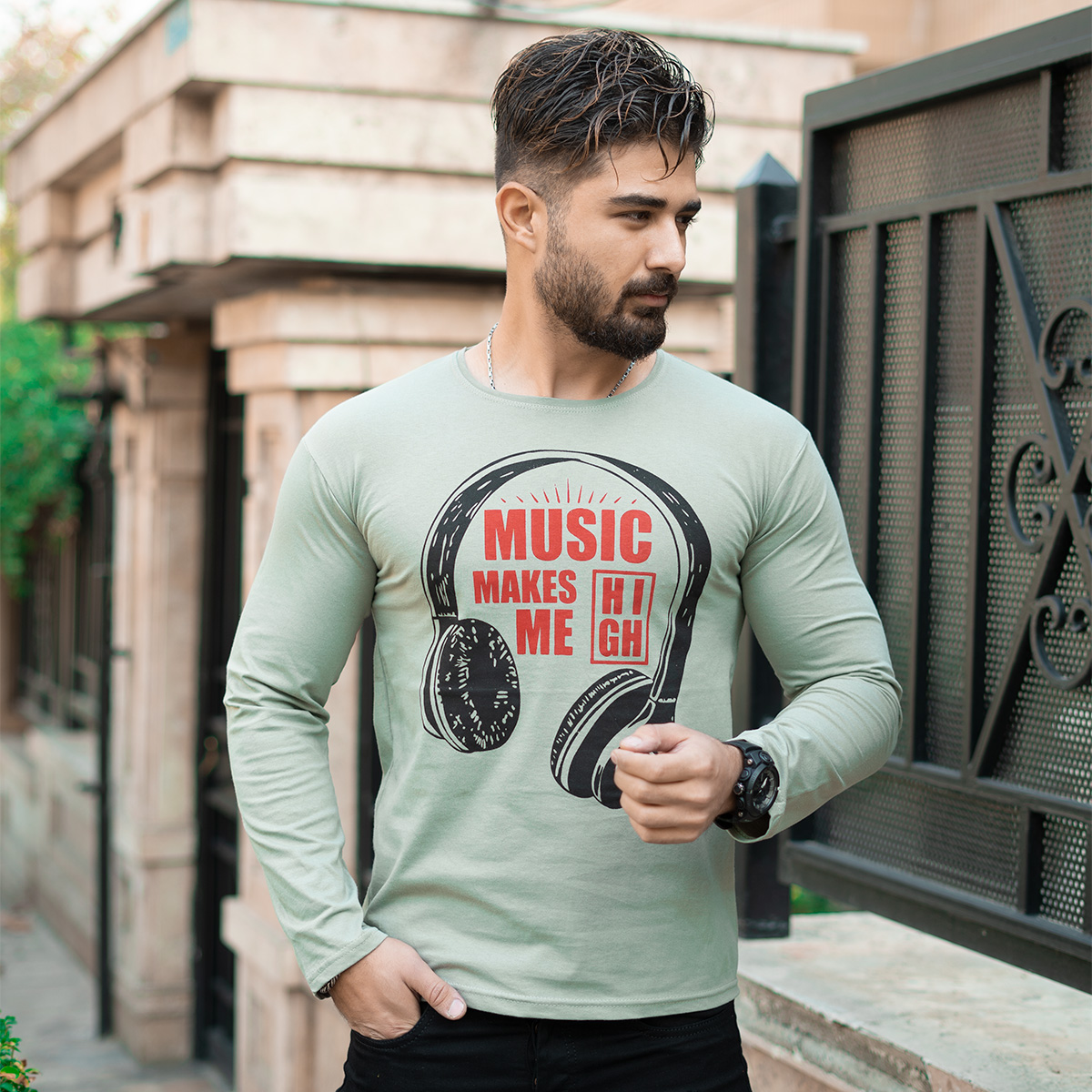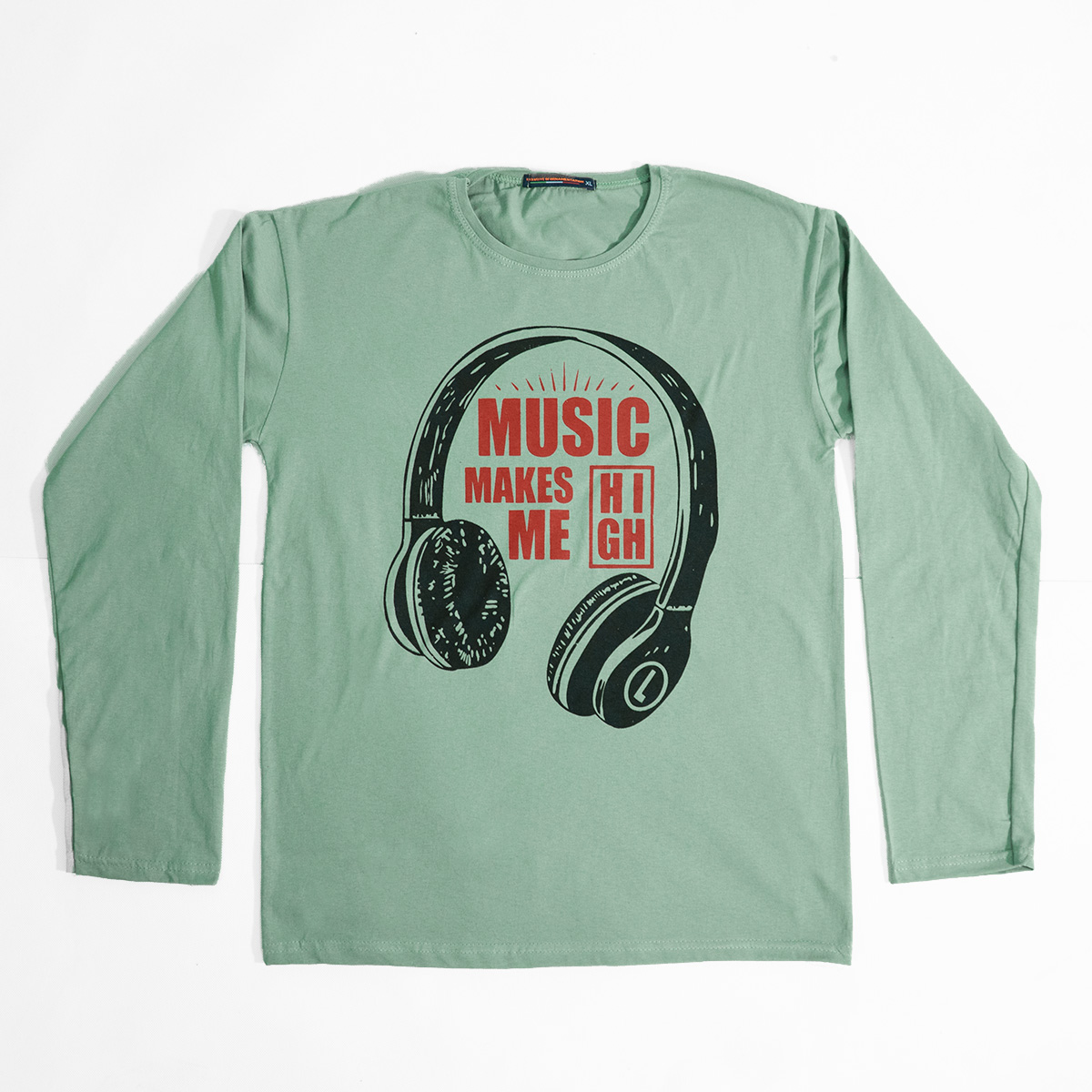 تیشرت آستین بلند مردانه طرح هدست سبز مدل O22