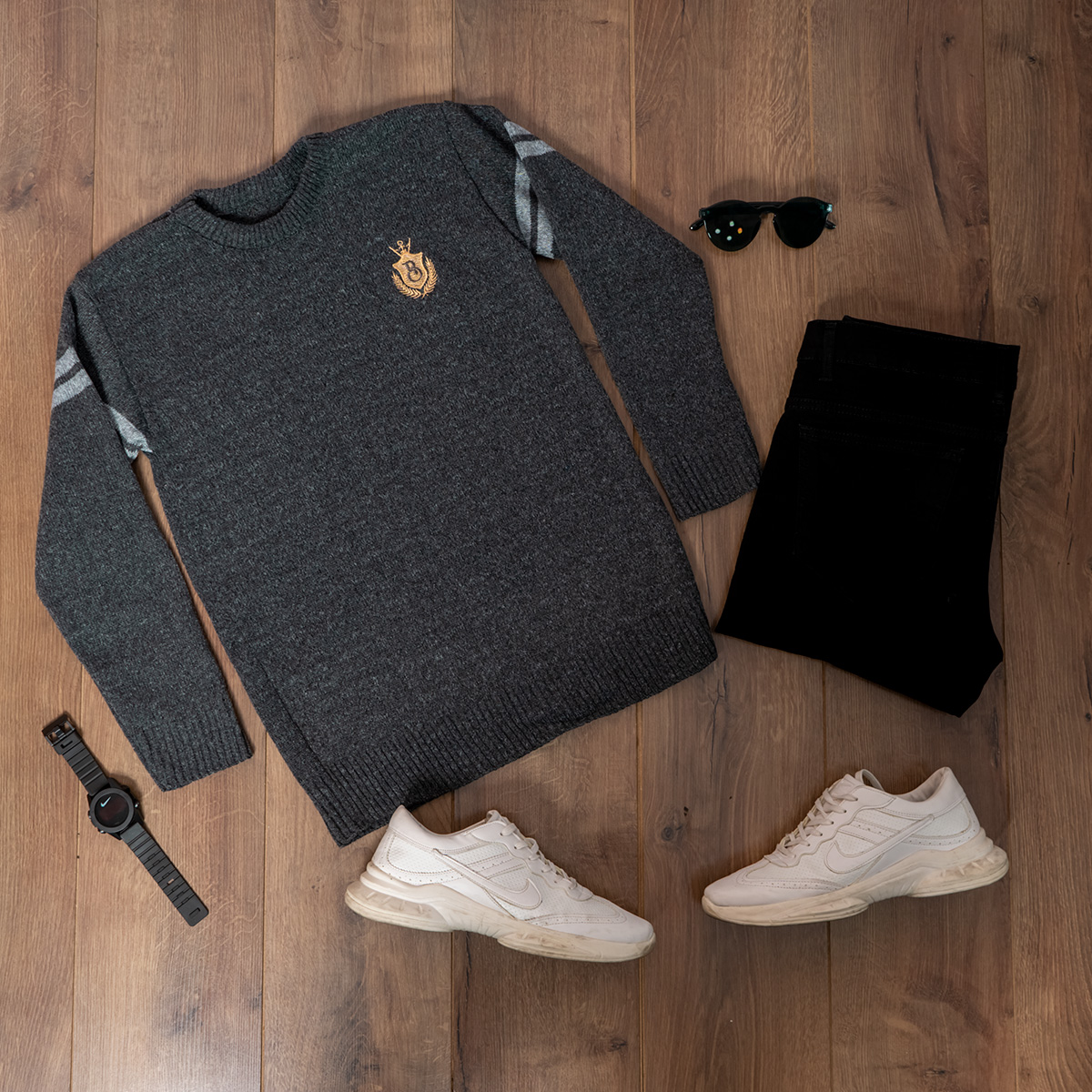 پلیور مردانه ذغالی مدل Akar