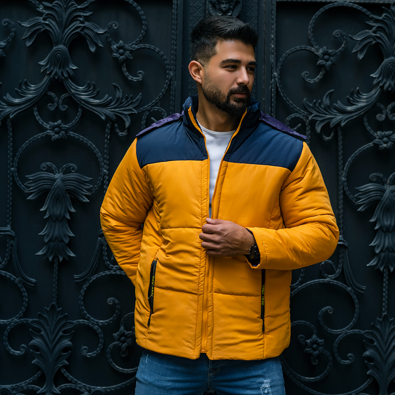 کاپشن دورنگ سرمه ای زرد مردانه مدلAidin