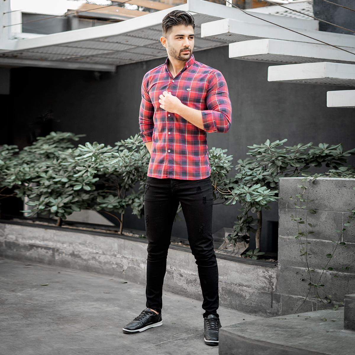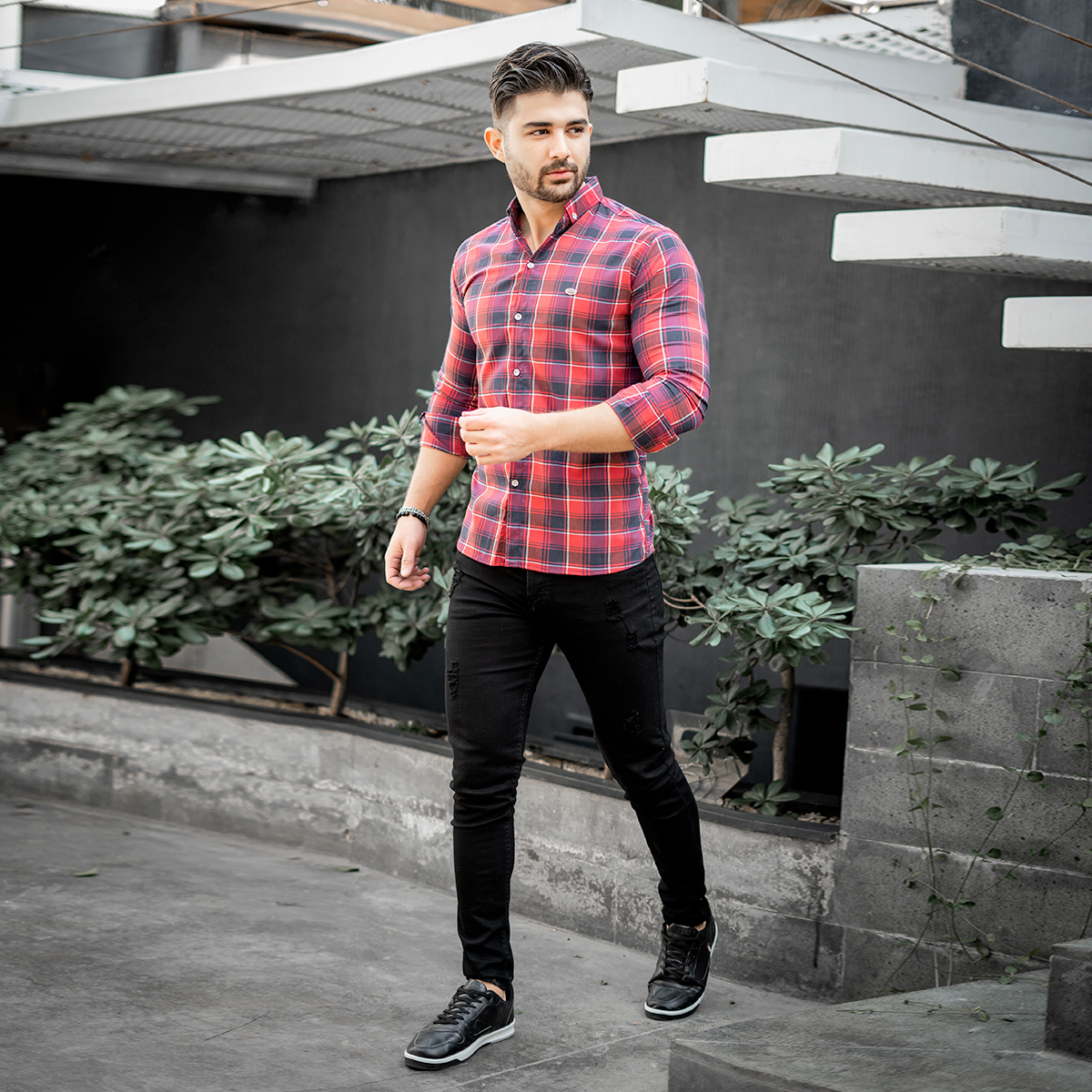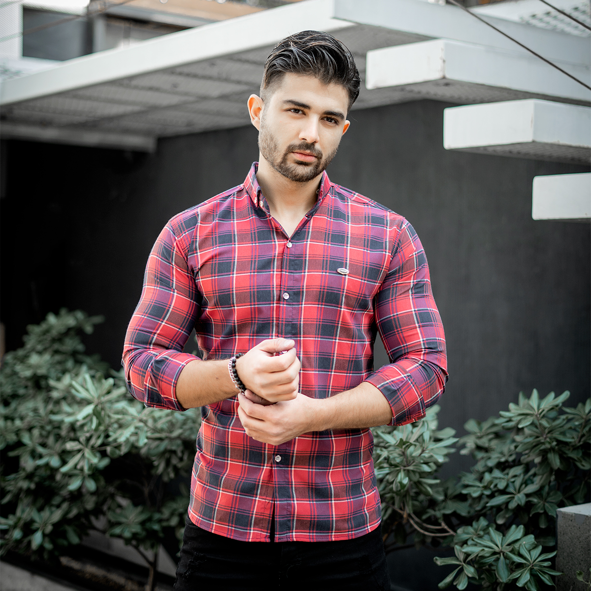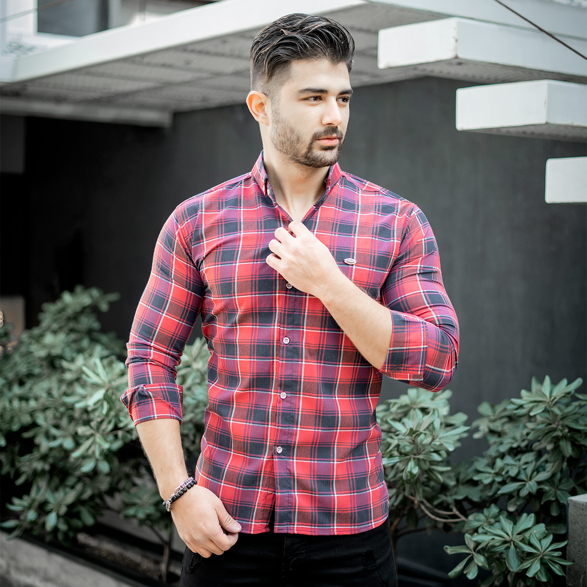 پیراهن مردانه چهارخونه قرمز مدل Rama