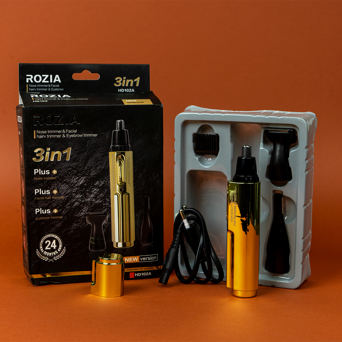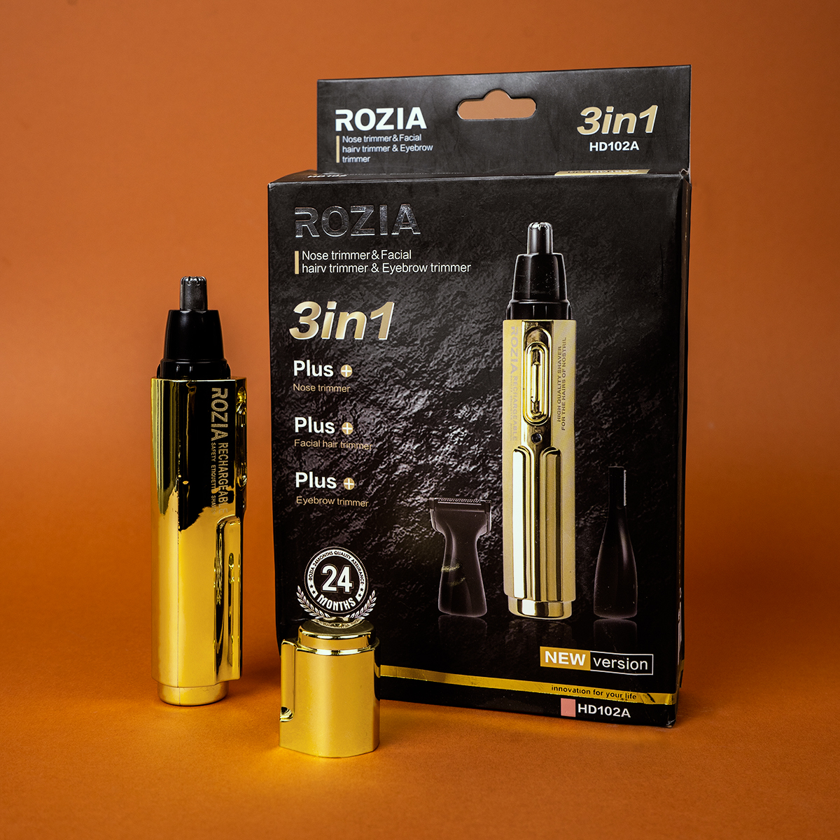 داشتن موی زائد درگوش و بینی شاید آزاردهنده باشد پس اگر به زیبایی و آراستگی اهمیت قائل هستید باید درصدد راهی برای رفع این مشکل باشید که ما توصیه می‌کنیم در کنار استفاده از تمامی وسایل اصلاح سروصورت و بدن جایی برای یک موزن گوش و بینی باکیفیت، بازکنیم طوری که باعث شود آراستگی ما چندین برابر شود؛ موزن سه کاره HD102 از برند روزیا(Rozia) این امکان را فراهم کرده تا به‌راحتی از شر این موها که به‌شدت در معرض دید است خلاص شوید. این دستگاه دارای موتور پرقدرت و بادوامی است که همین امر موجب عمر بالای دستگاه می‌شود و برای سفرها و استفاده طولانی گزینه بسیار مناسبی است؛ و از دیگر مشخصه‌های بارز آن داشتن تیغه‌های استیل ضد‌زنگ است که طراحی این تیغه‌ها به‌صورتی است که بدون کمترین فشار بر پوست، قادر به زدودن موهای اضافه است، لذا موجب آسیب و خراش در پوست‌های حساس نمی‌شود. این دستگاه در‌واقع چهار کاره محسوب می‌شود و دارای چهار عدد سری است. یک سری آن، چرخشی است که امکان کوتاه کردن موهای داخل گوش و بینی را برای شما فراهم می‌کند. سری دیگر آن جهت خط‌زنی است و برای مرتب‌کردن خط‌ ریش کاربرد دارد. این دستگاه همچنین یک سری جداگانه جهت زدودن موهای روی لبه گوش و اطراف سبیل دارد که کاربرد این دستگاه را بیشتر کرده است و می‌توانید از صورتی آراسته‌تر برخوردار شوید. سری چهارم دستگاه مخصوص کوتاهی و مرتب کردن موهای ابرو طراحی شده و به‌راحتی می‌توان از آن استفاده و سپس برای تمیزکردن آن را شست‌و‌شو داد. درکل این مجموعه با چهار سری به‌تنهایی قادر به پیرایش کامل موهای زائد صورت شما است و ظاهری آراسته را می‌تواند برای شما فراهم کند. از‌طرفی برای راحتی نگهداری از دستگاه یک فرچه تمیزکننده و درپوش نیز برای آن درنظر گرفته شده است. گفتنی است این دستگاه دارای باطری قابل شارژ است و به‌راحتی می‌توان آن را شارژ کرد و در مواقع لزوم و هنگامی که دسترسی به برق امکان‌پذیر نیست، از آن استفاده کرد.