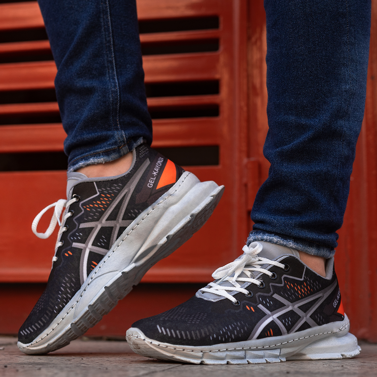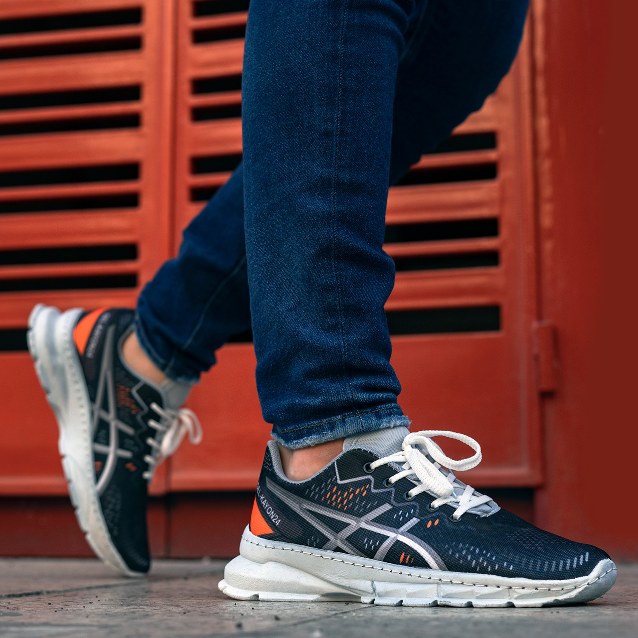 کفش مردانه اسیکس سرمه ای نارنجی مدل dahak