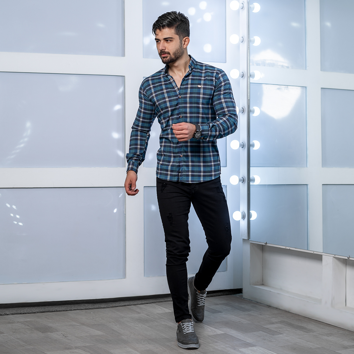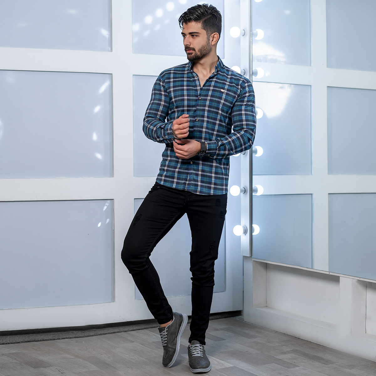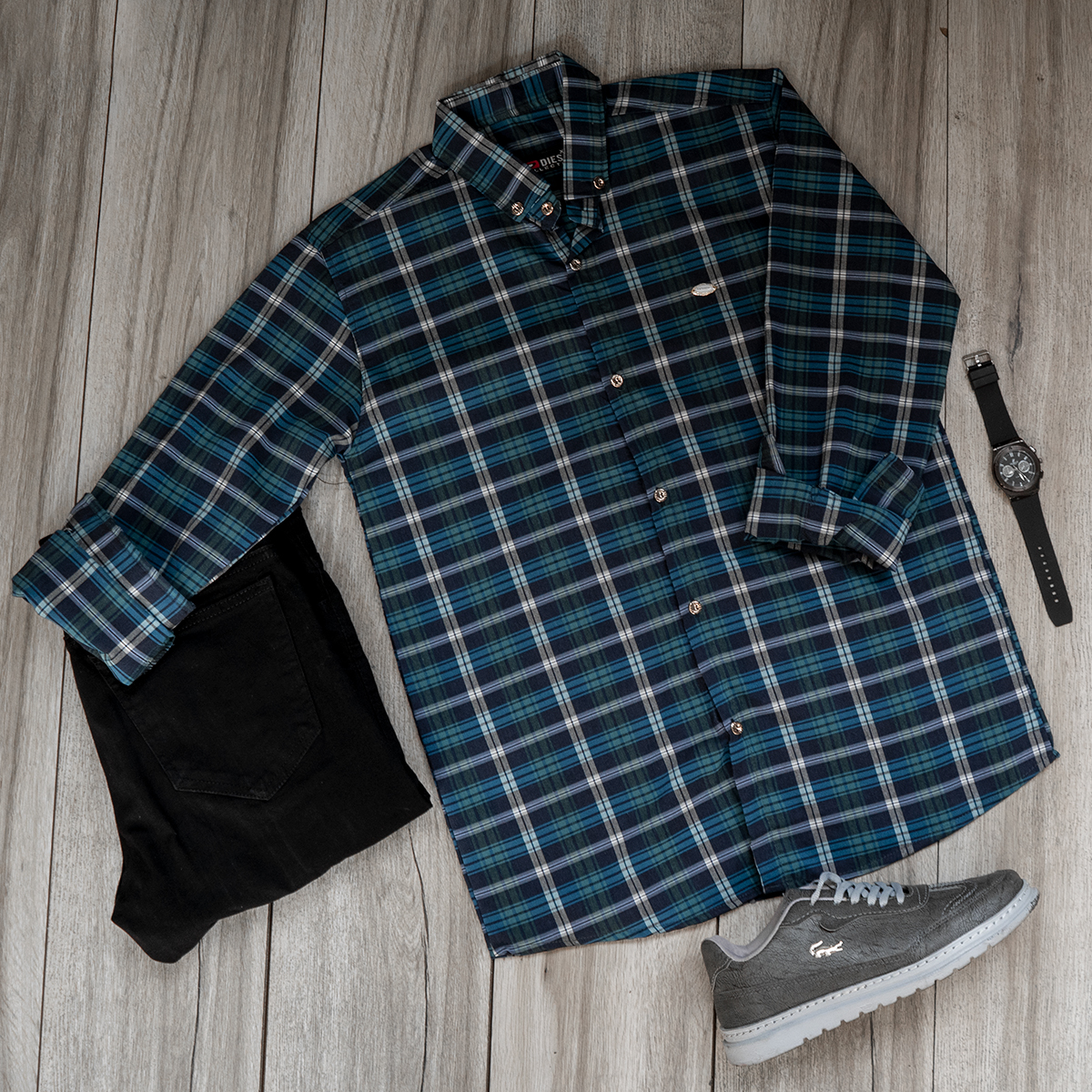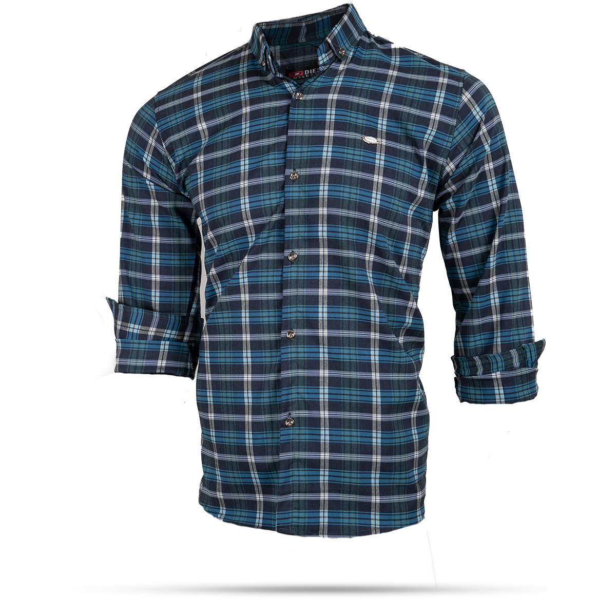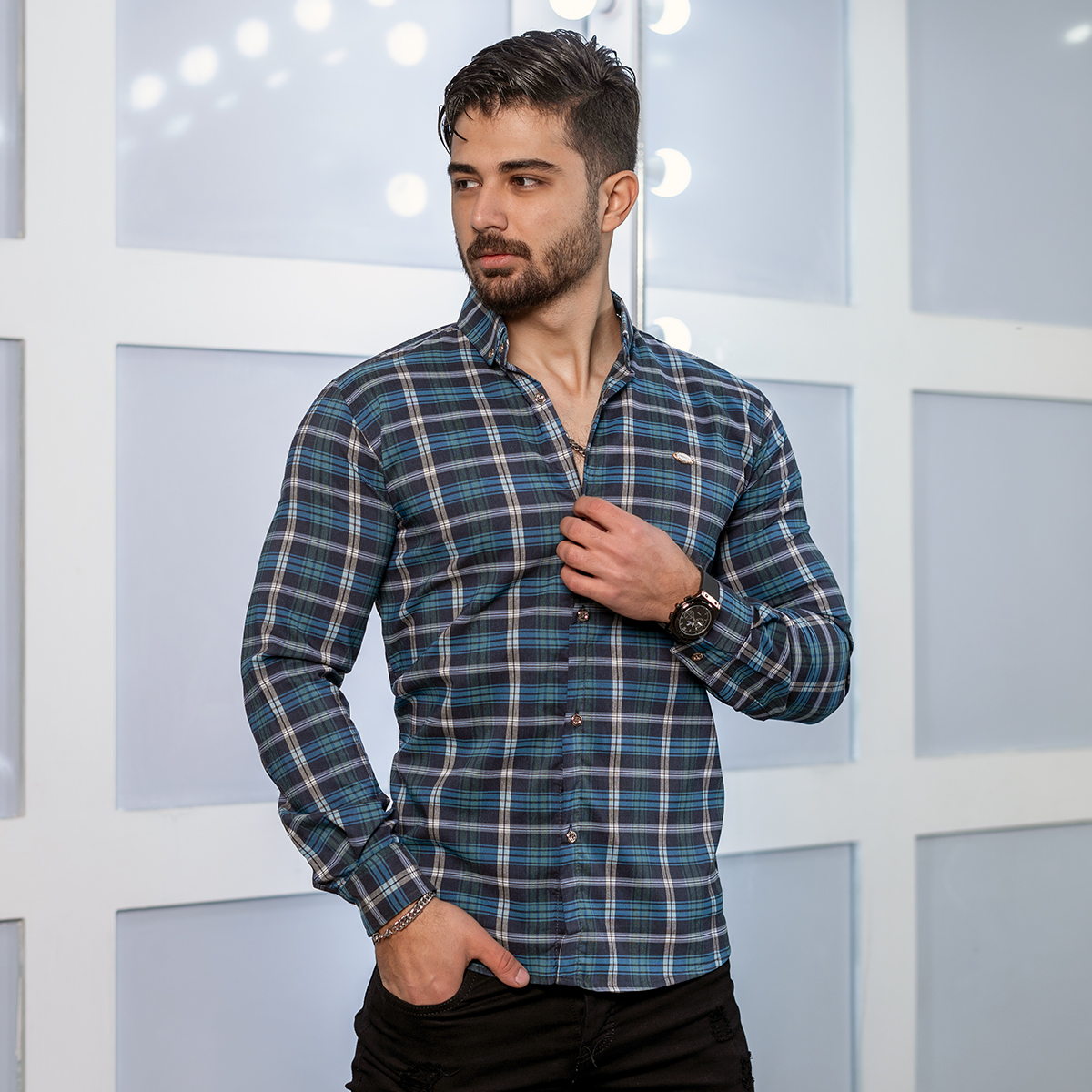 پیراهن چهارخونه سبز سرمه ای مردانه مدل Nadin