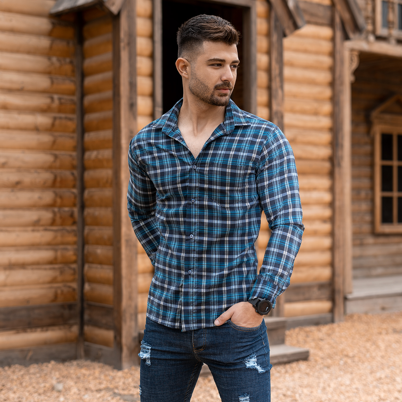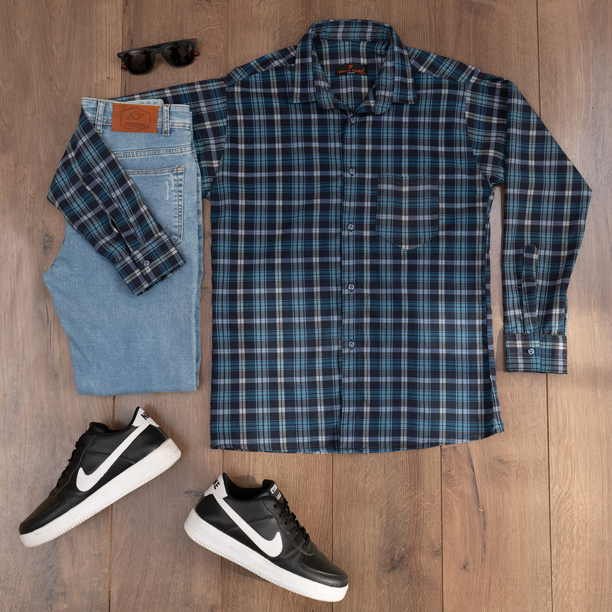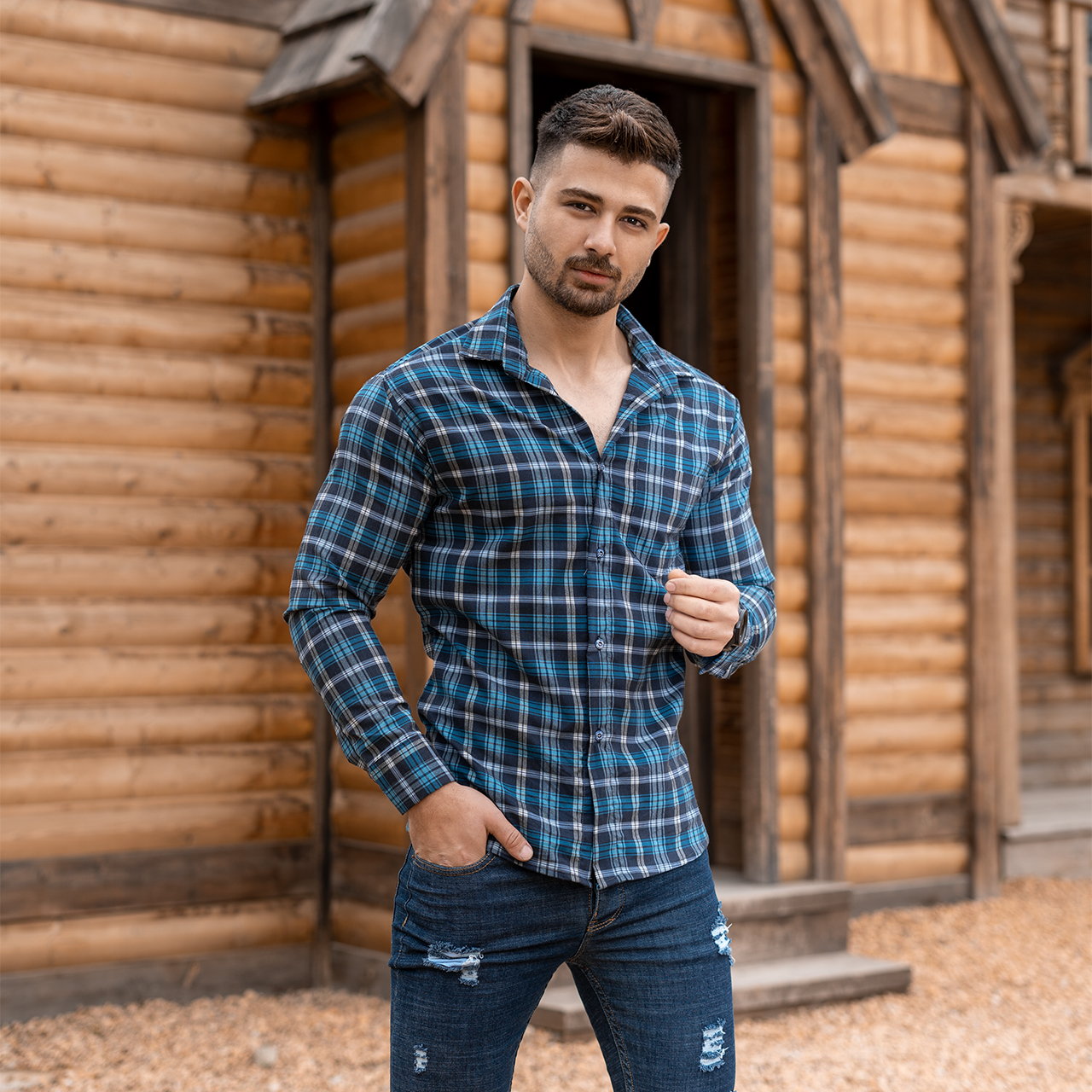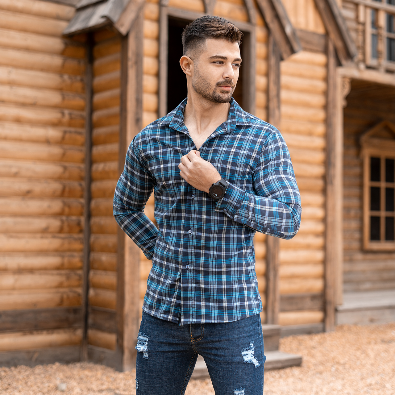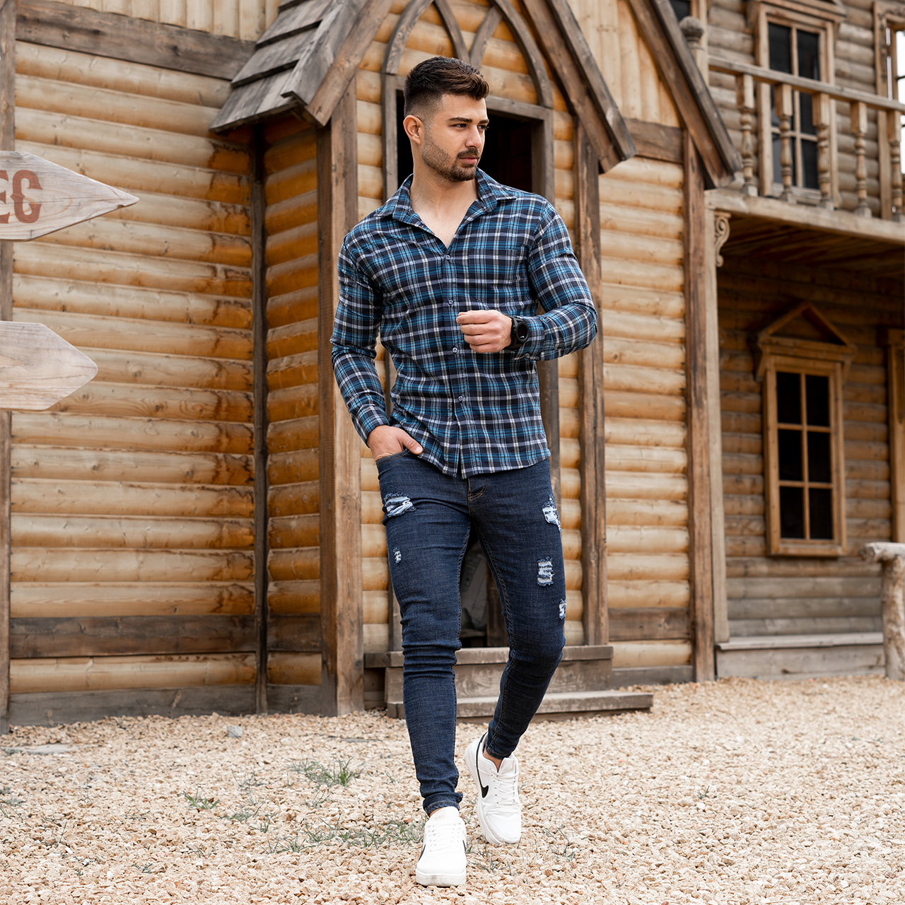 پیراهن چهارخانه آبی سرمه ای مردانه مدلDivan