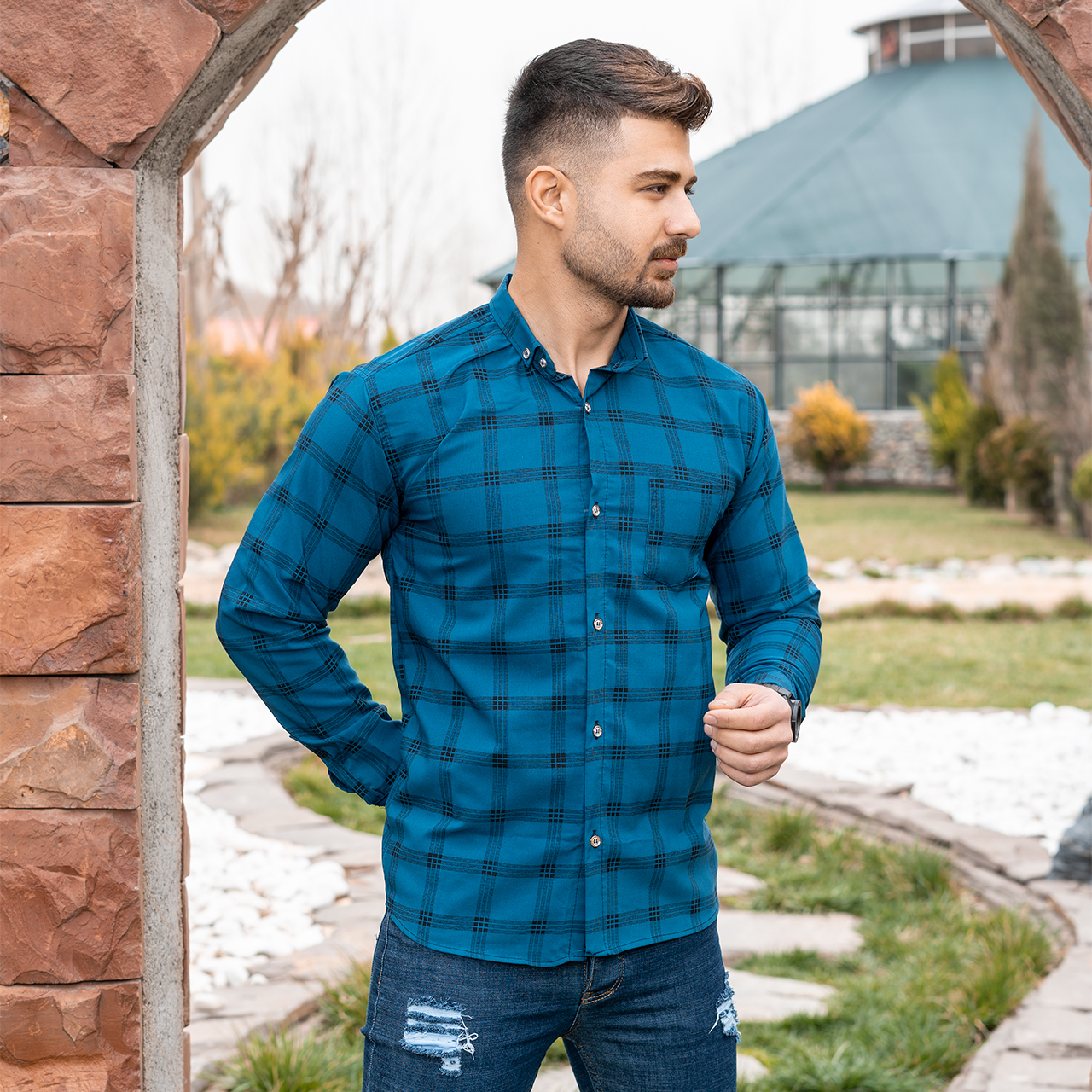پیراهن مردانه چهارخونه آبی مدل Ravin