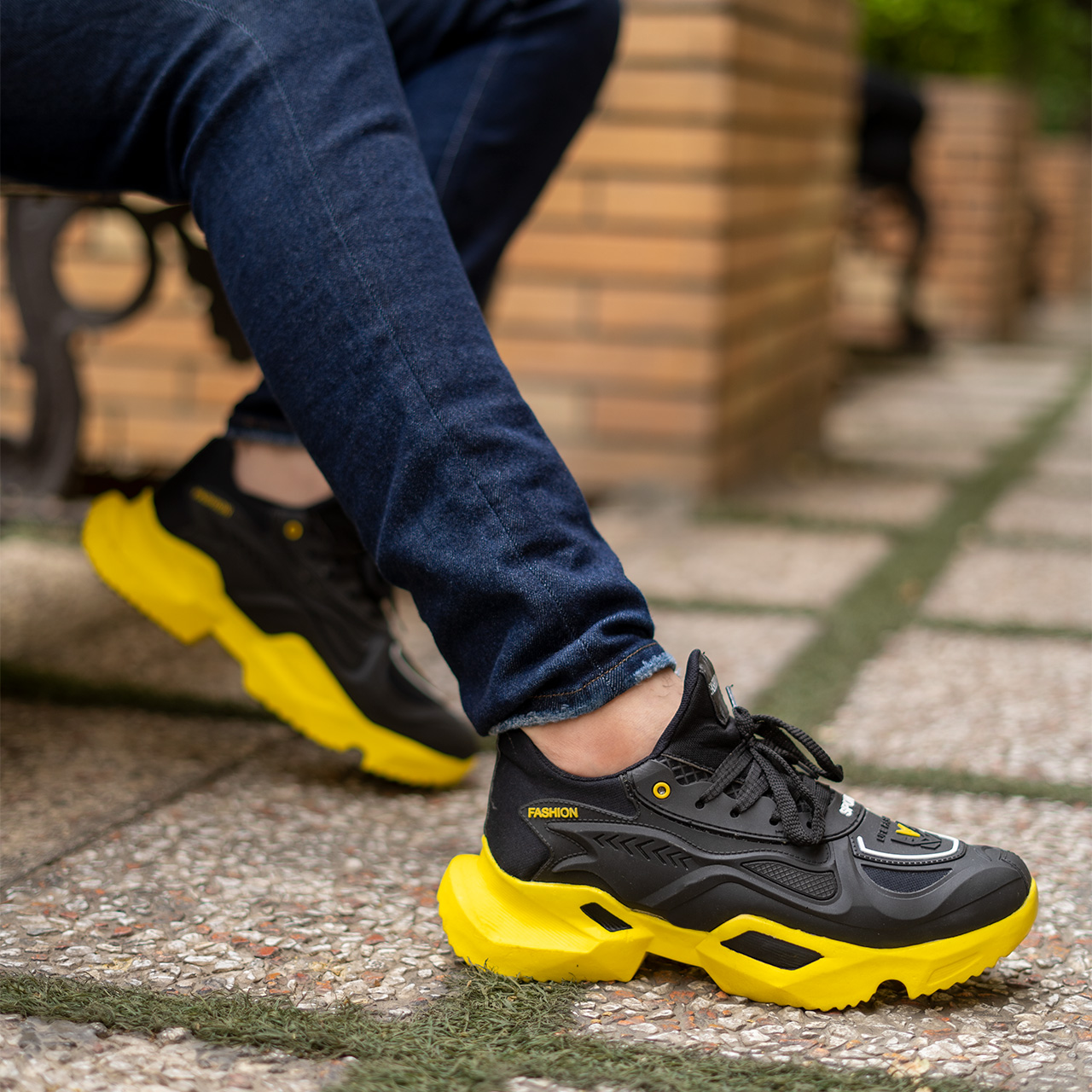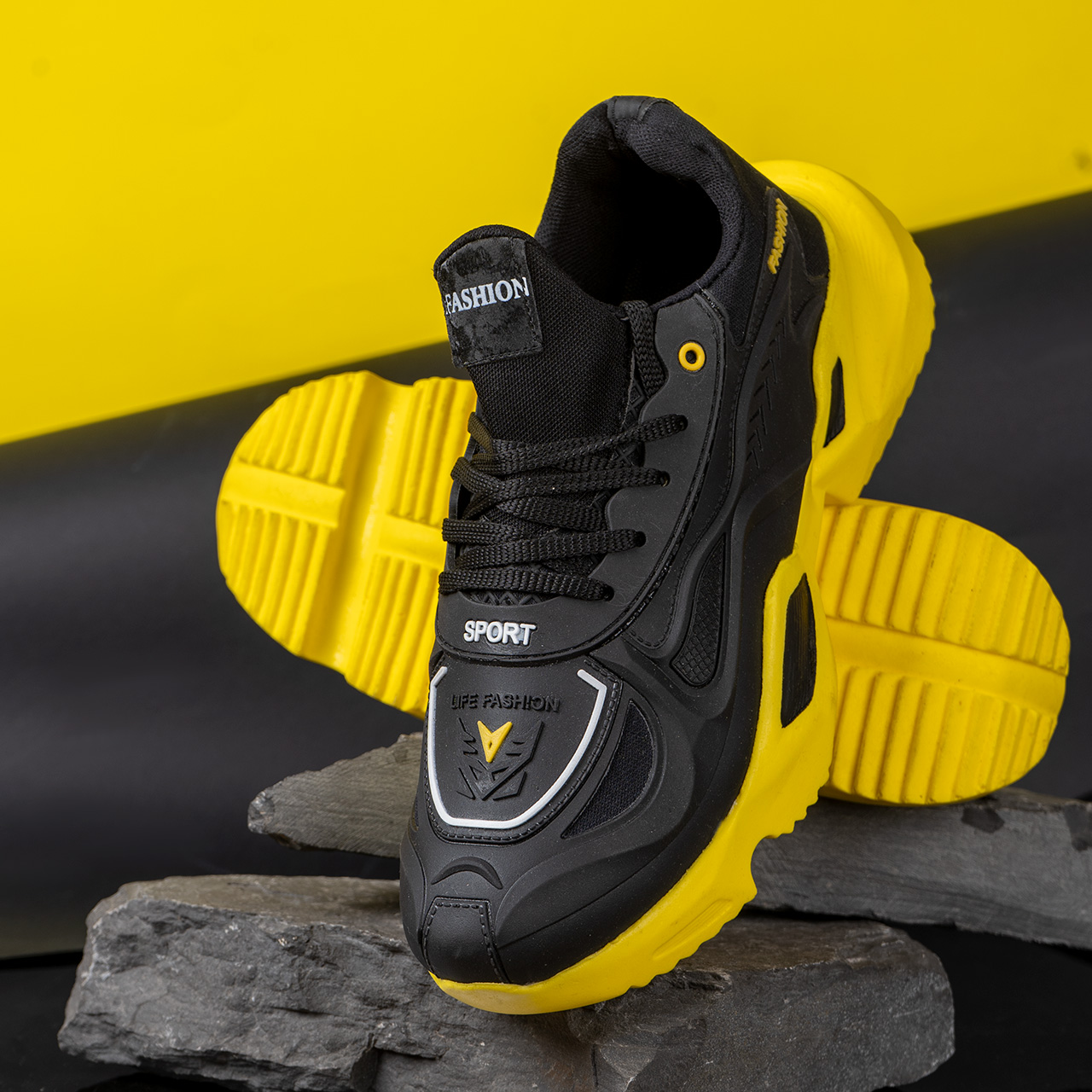 کفش ورزشی زرد مشکی مردانه مدل Y90