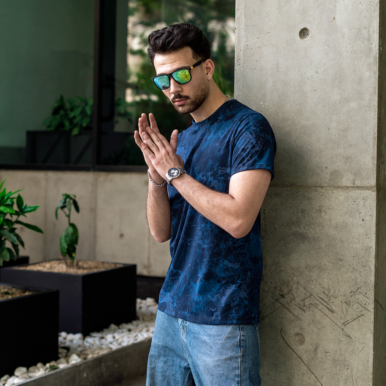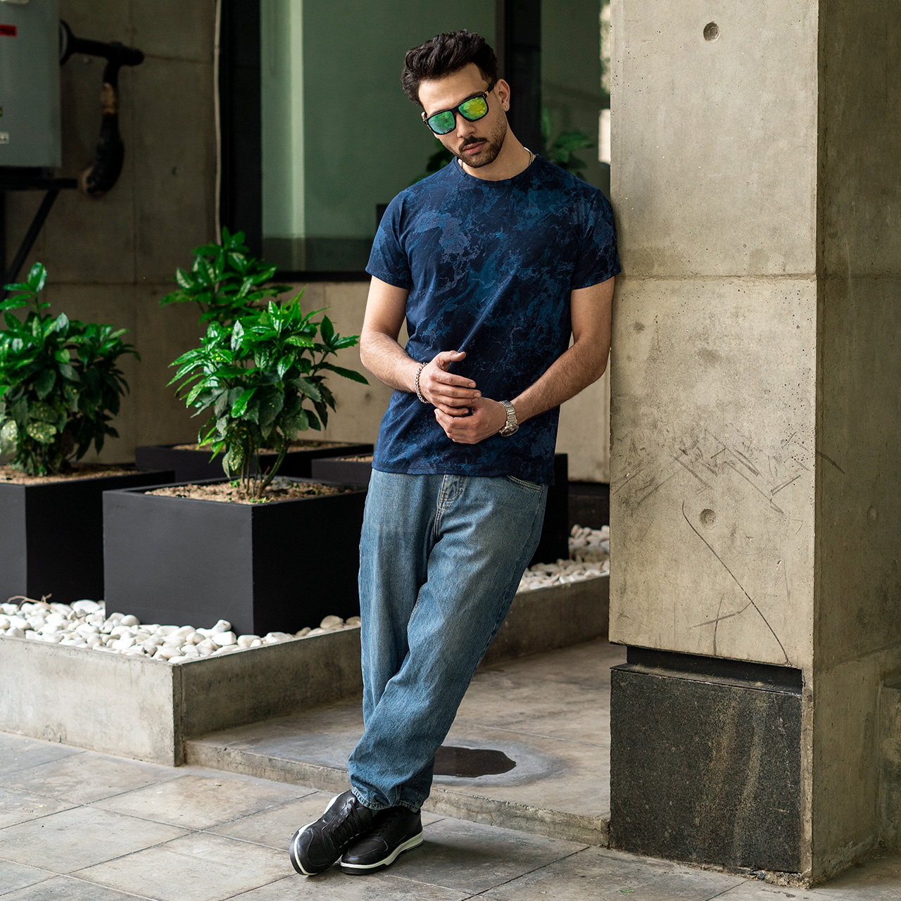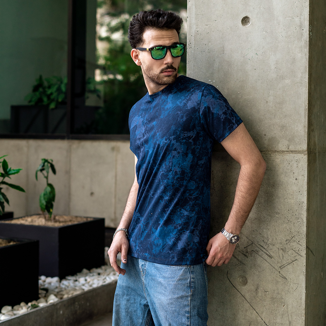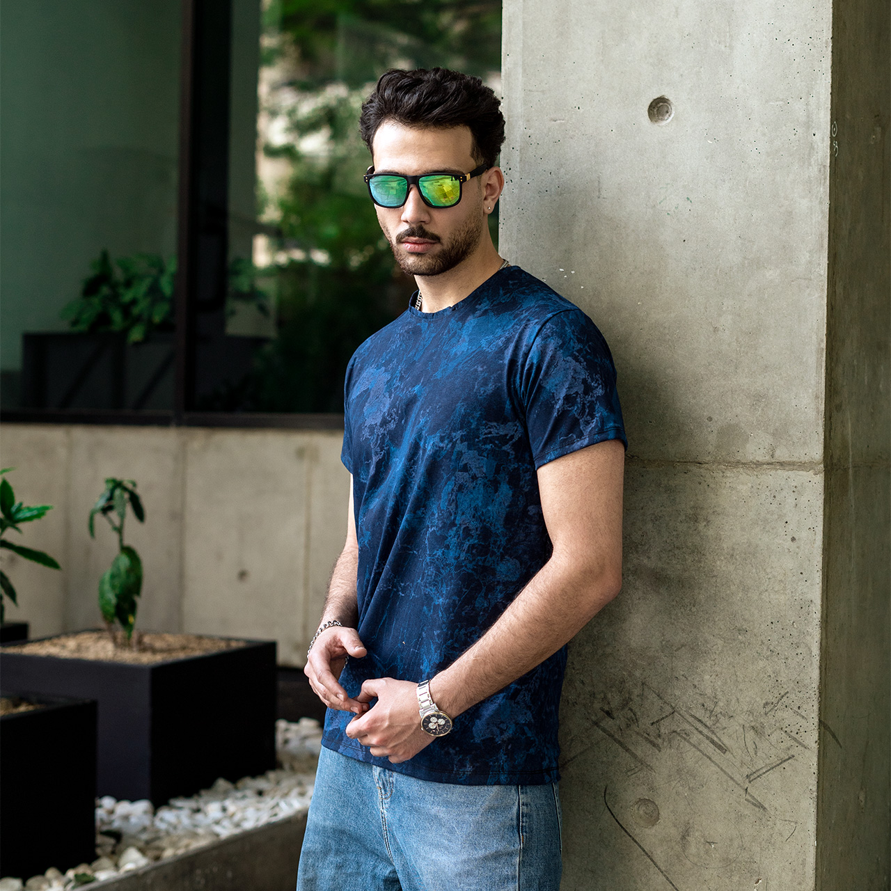 تیشرت مردانه سرمه ای آبرنگی مدل 61