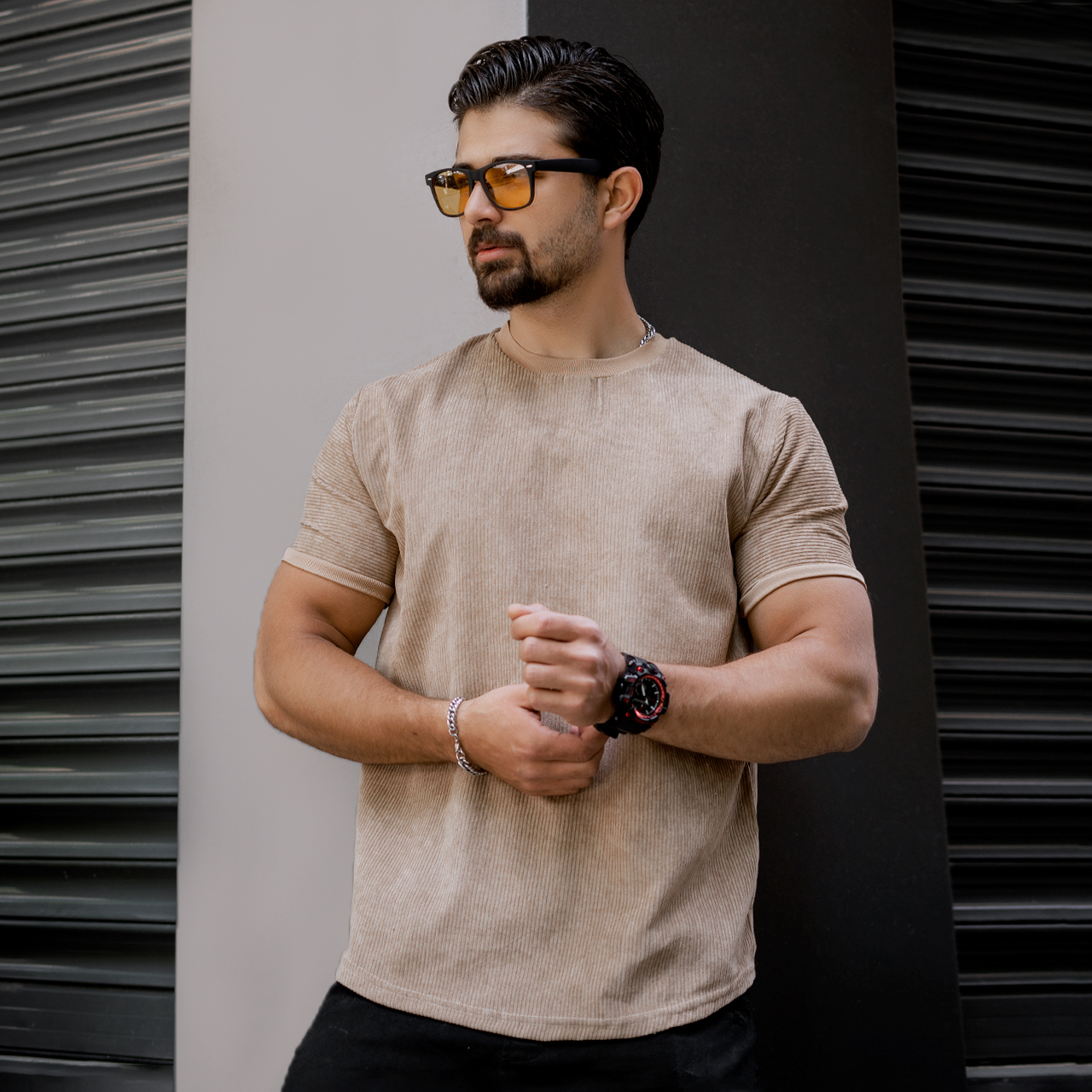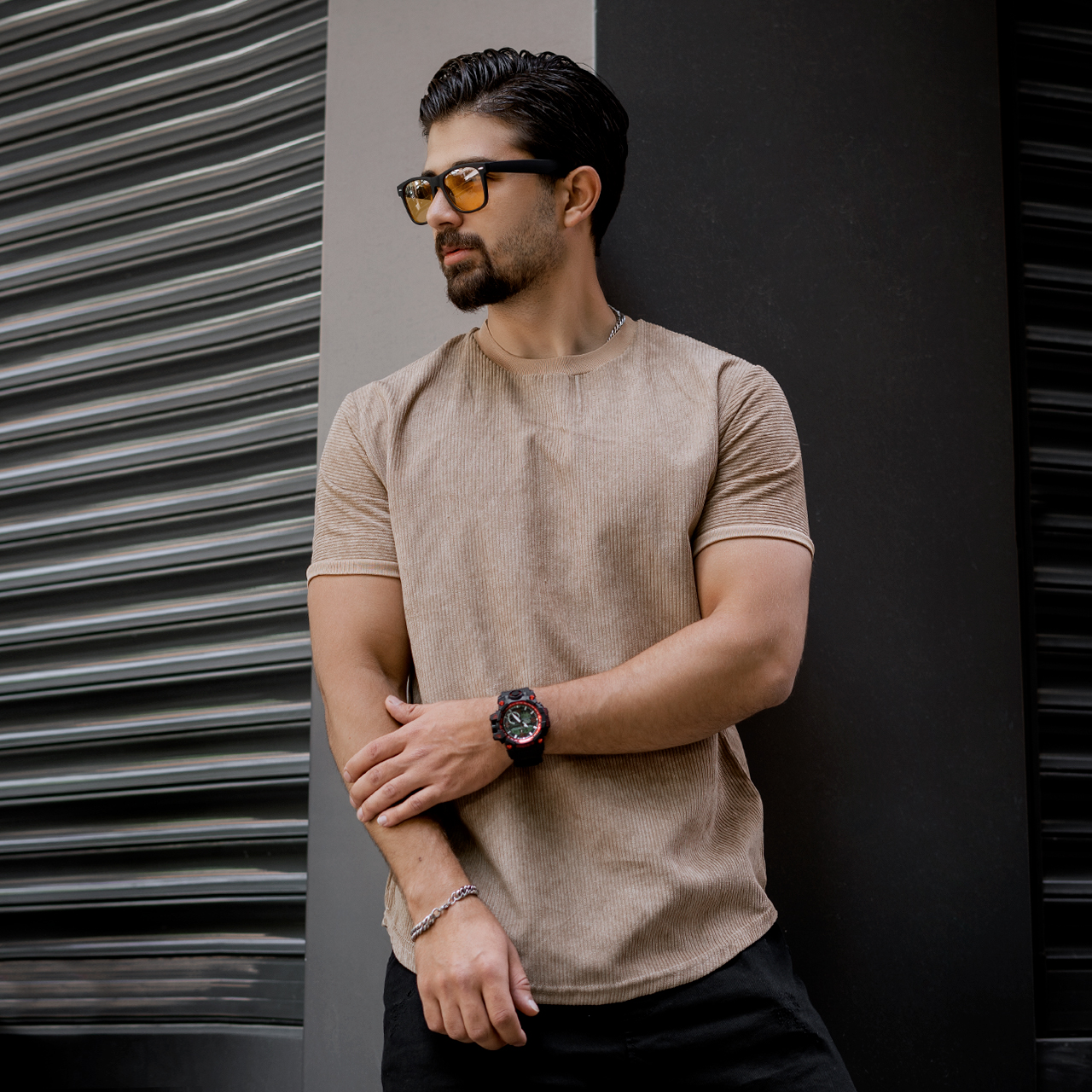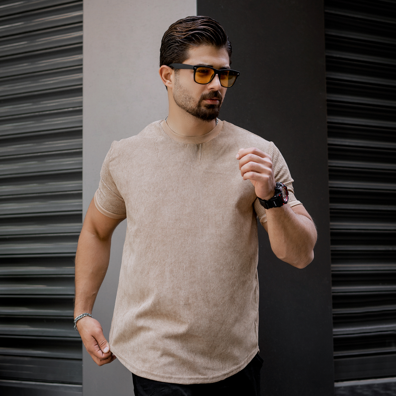 تیشرت مخمل کبریتی کرم مردانه مدل Farshid