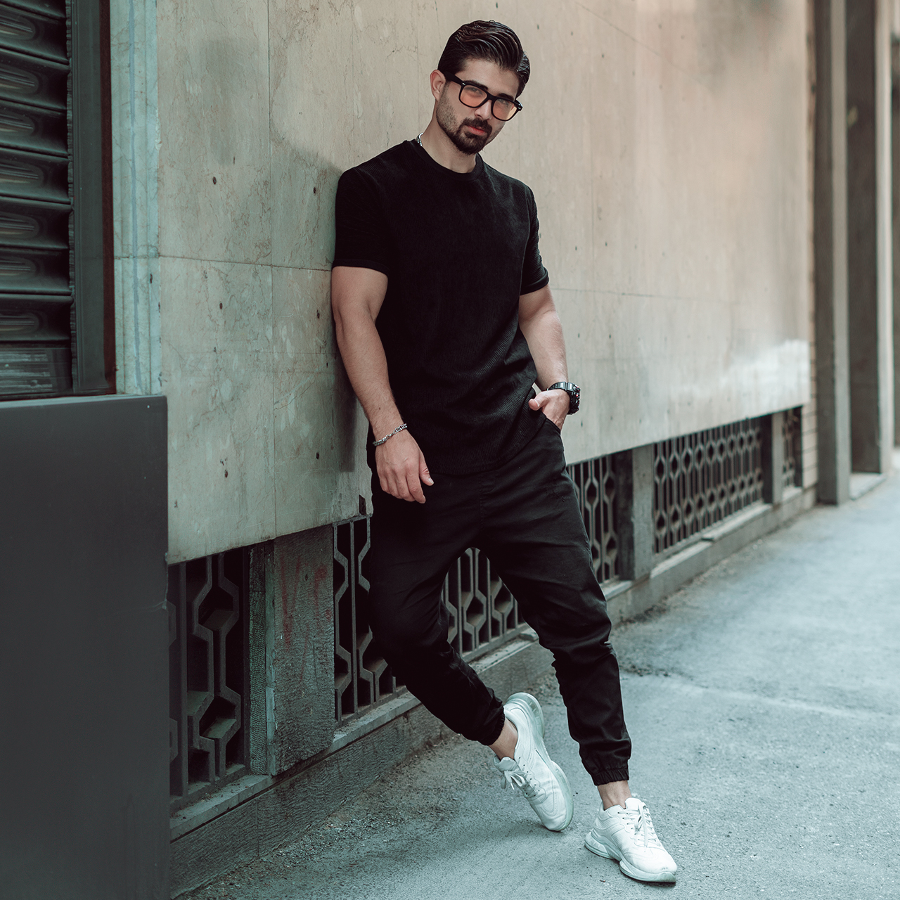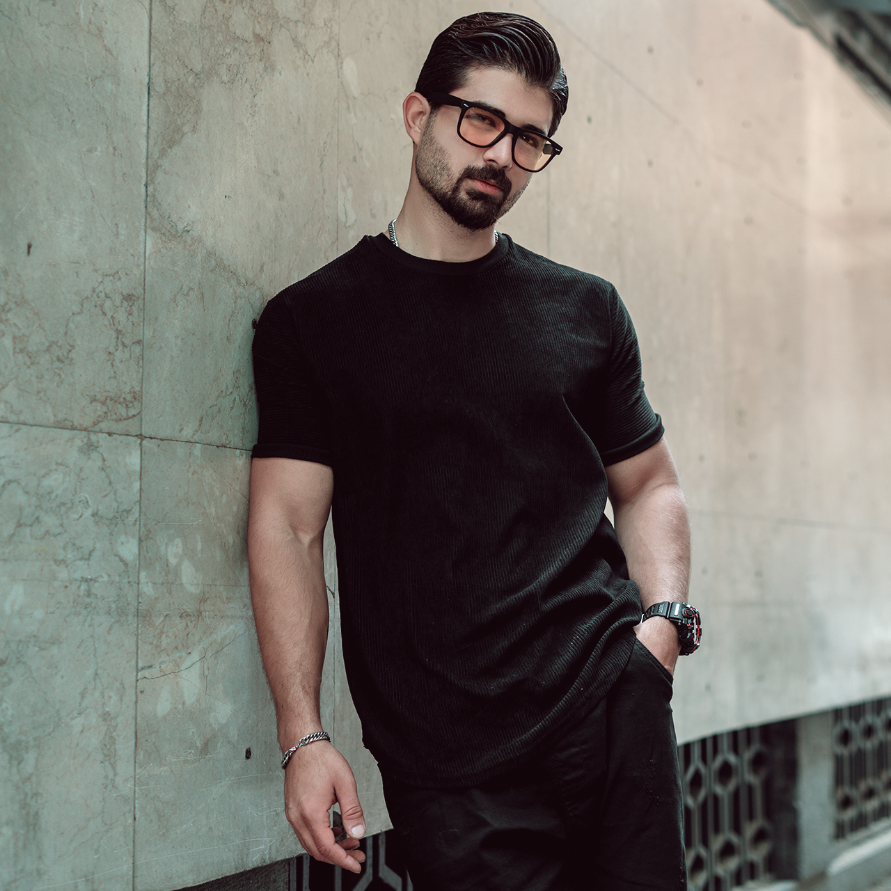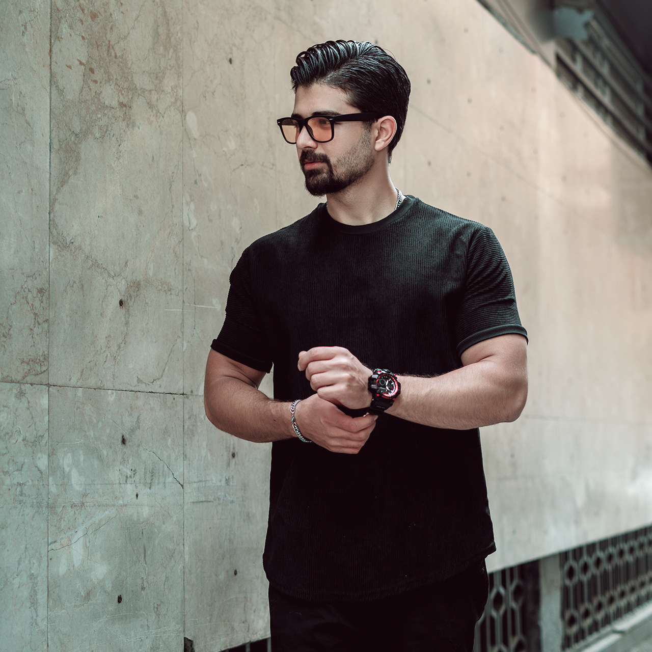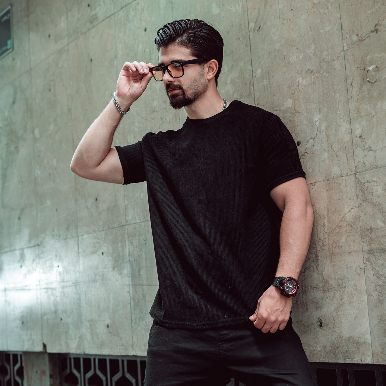 تیشرت مخمل کبریتی مشکی مردانه مدل Farshid