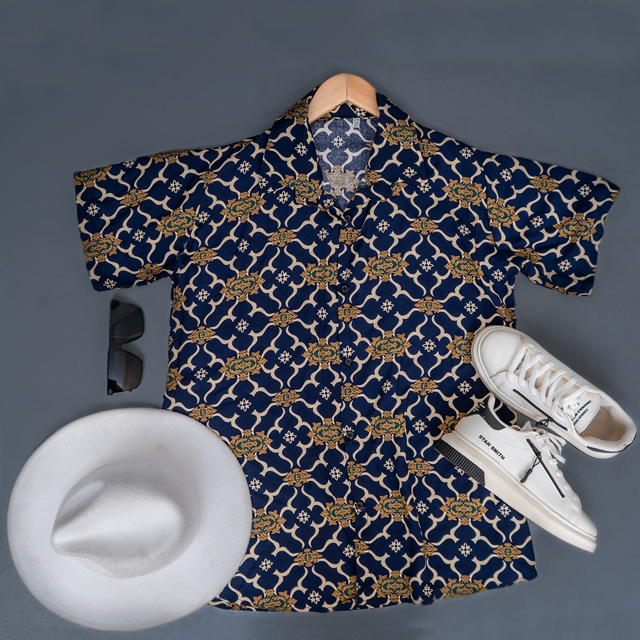 پیراهن هاوایی مردانه طرح پرانتز سرمه ای مدلE92