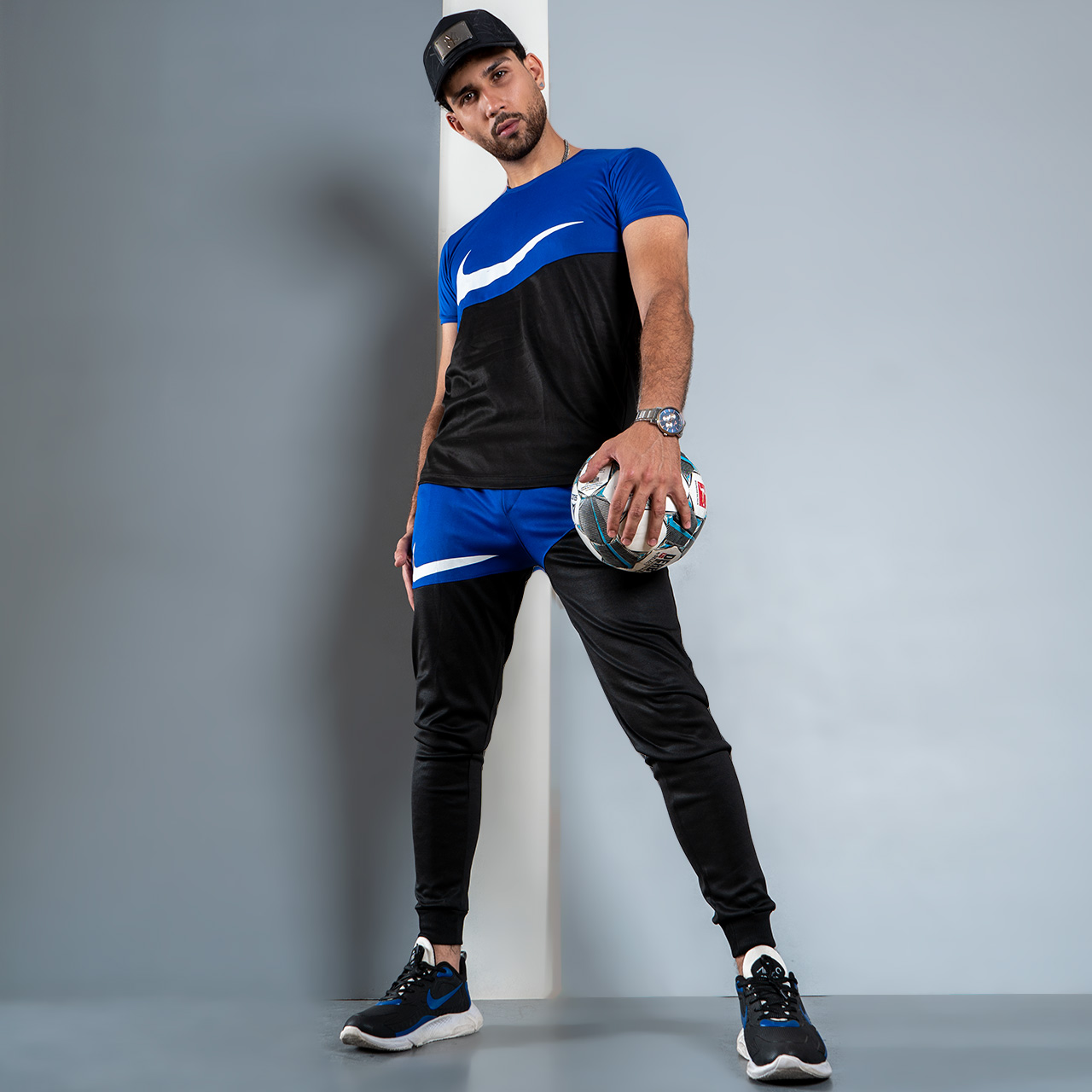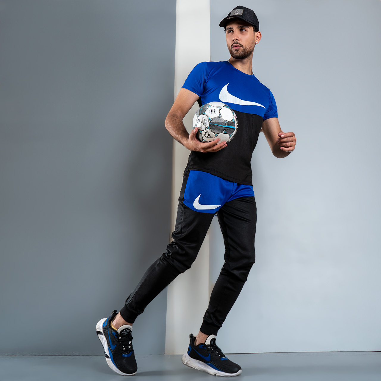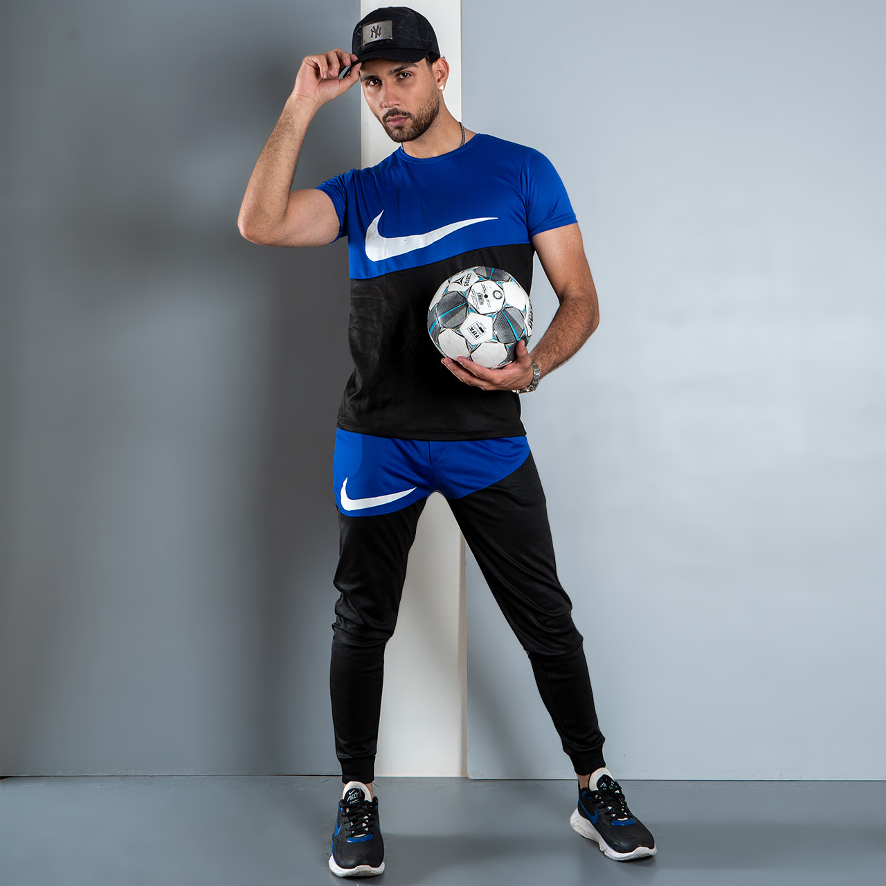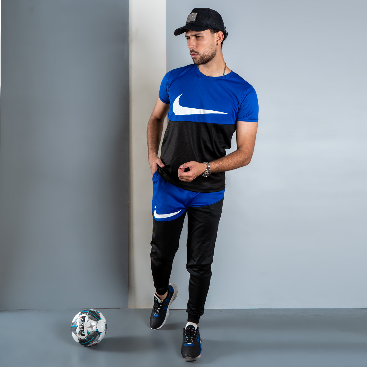 ست تیشرت شلوار نایک مشکی آبی مردانه مدلMs2