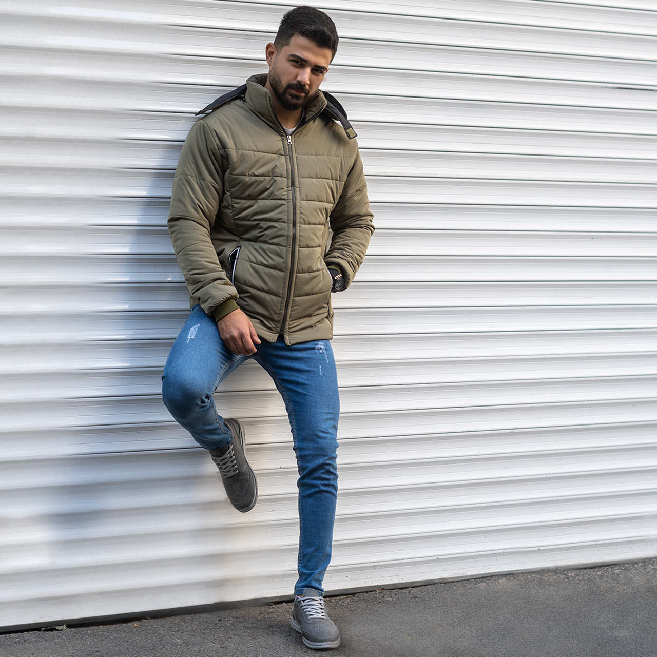 کاپشن مردانه ساده سبز زیتونی مدلAidin