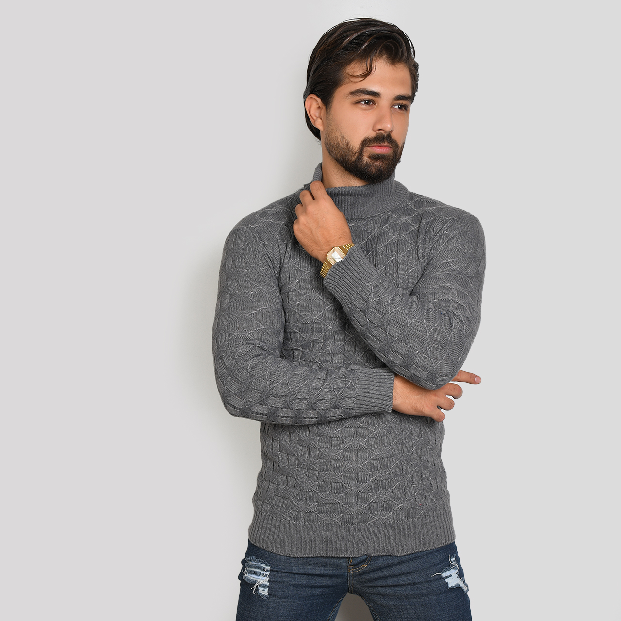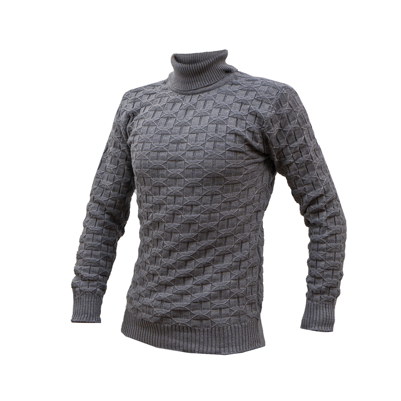 پلیور یقه اسکی طوسی تیره طرح لوزی مردانه مدلG10
