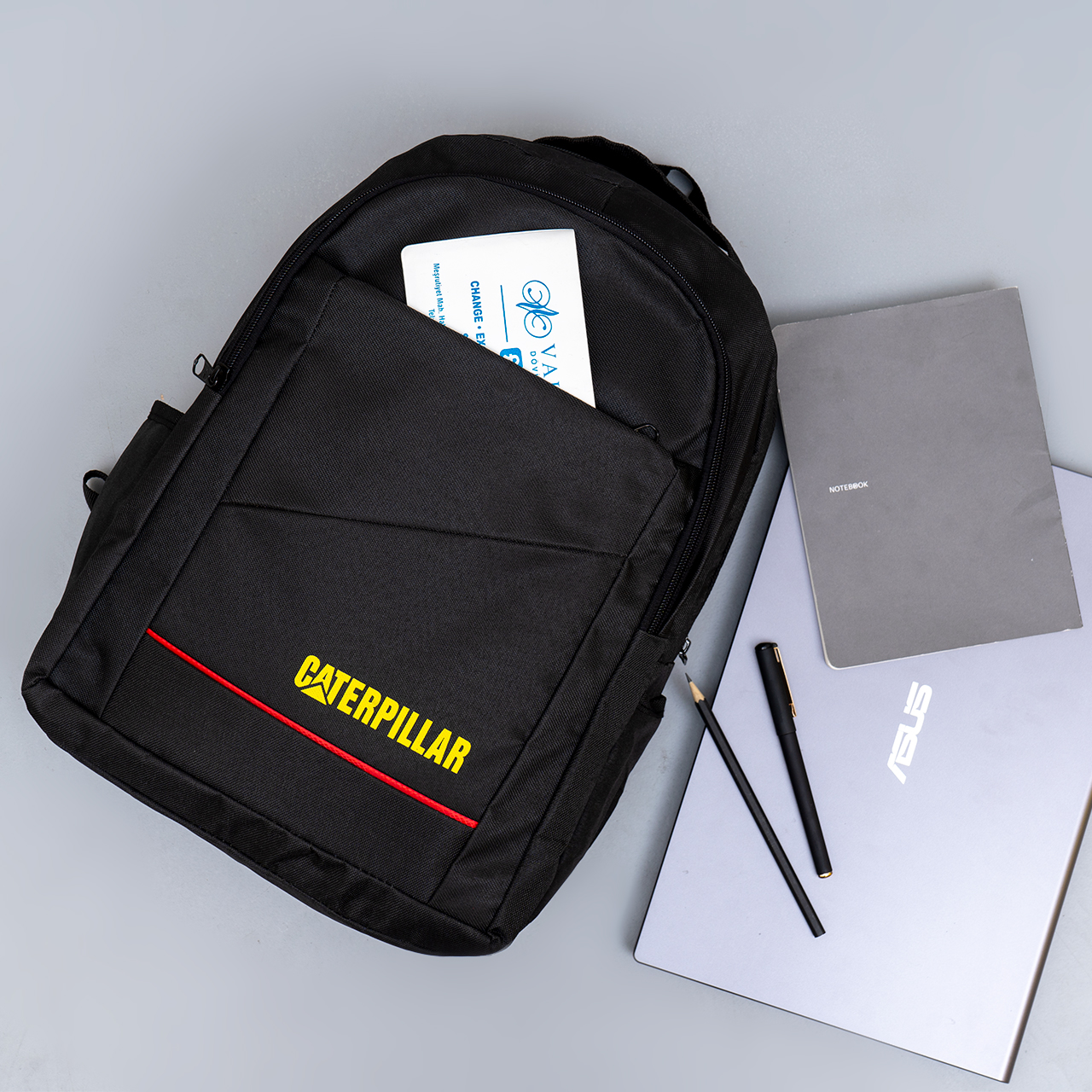 دارای یک محفظه بزرگ و دو جیب کوچکتر روی کیف و دو جیب کناره های کیف