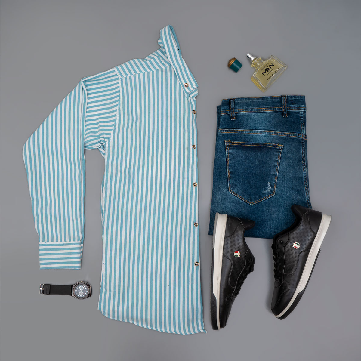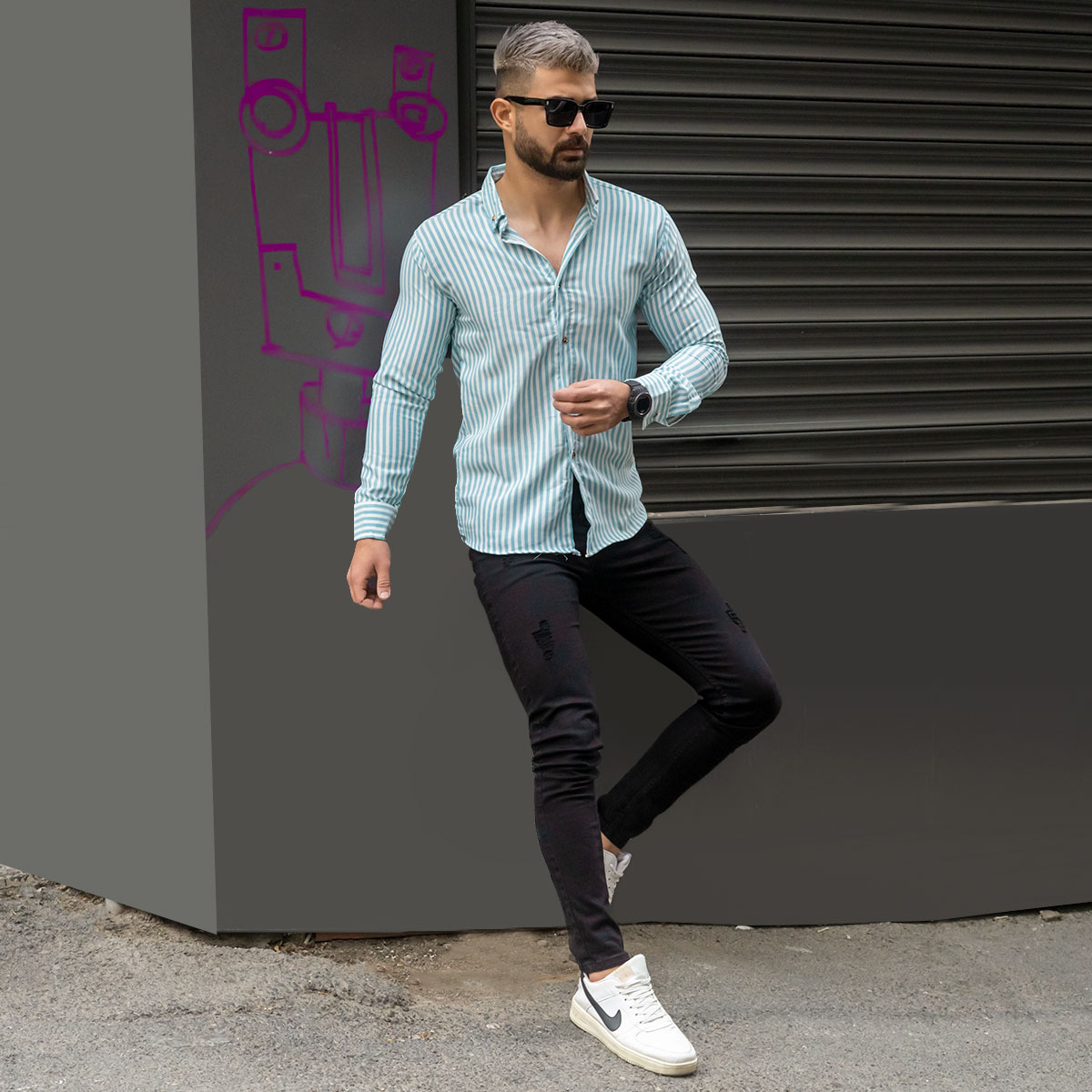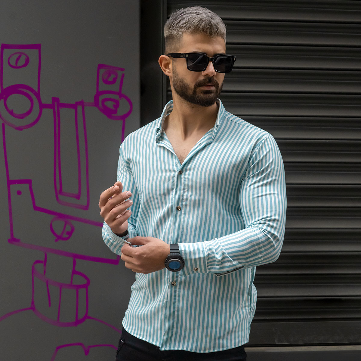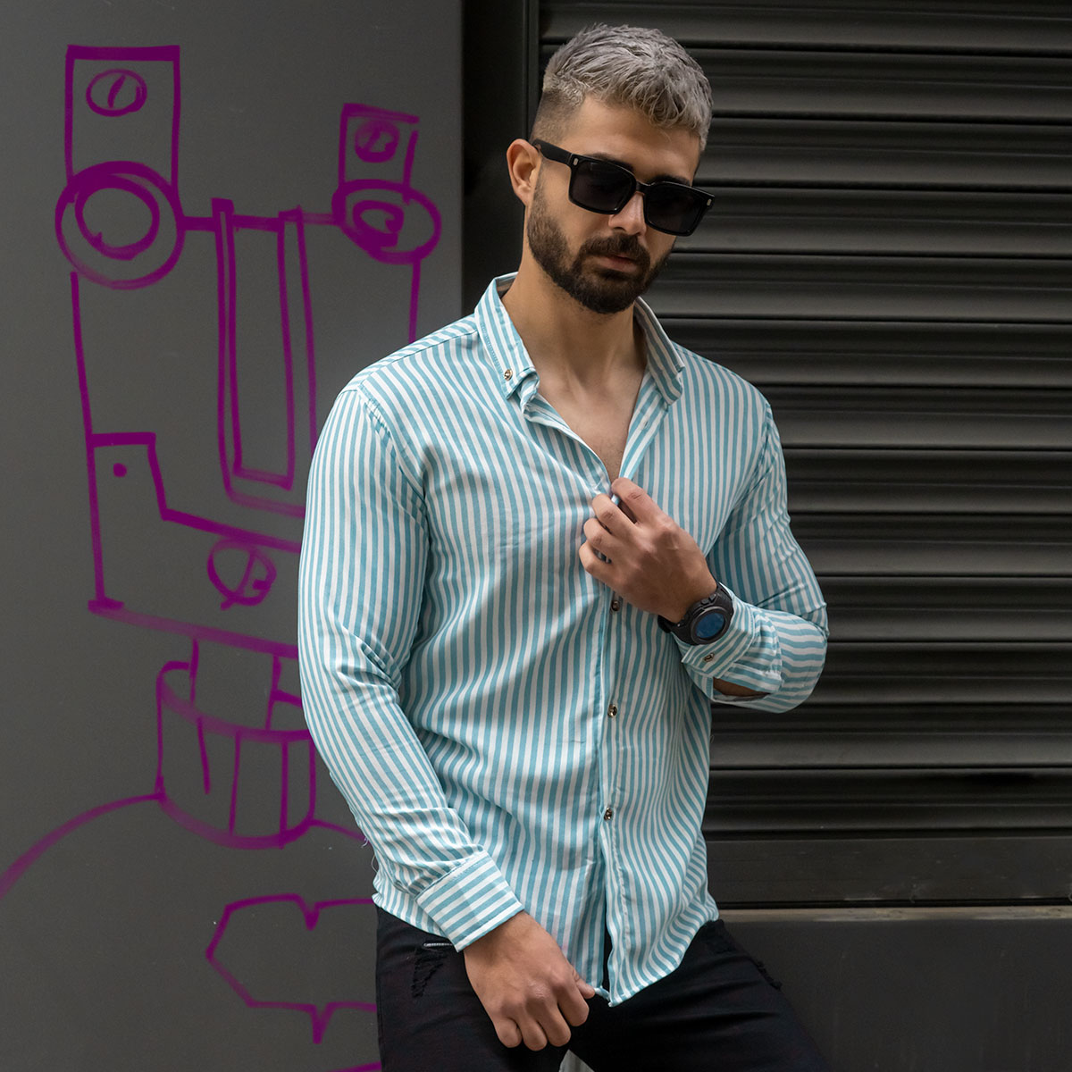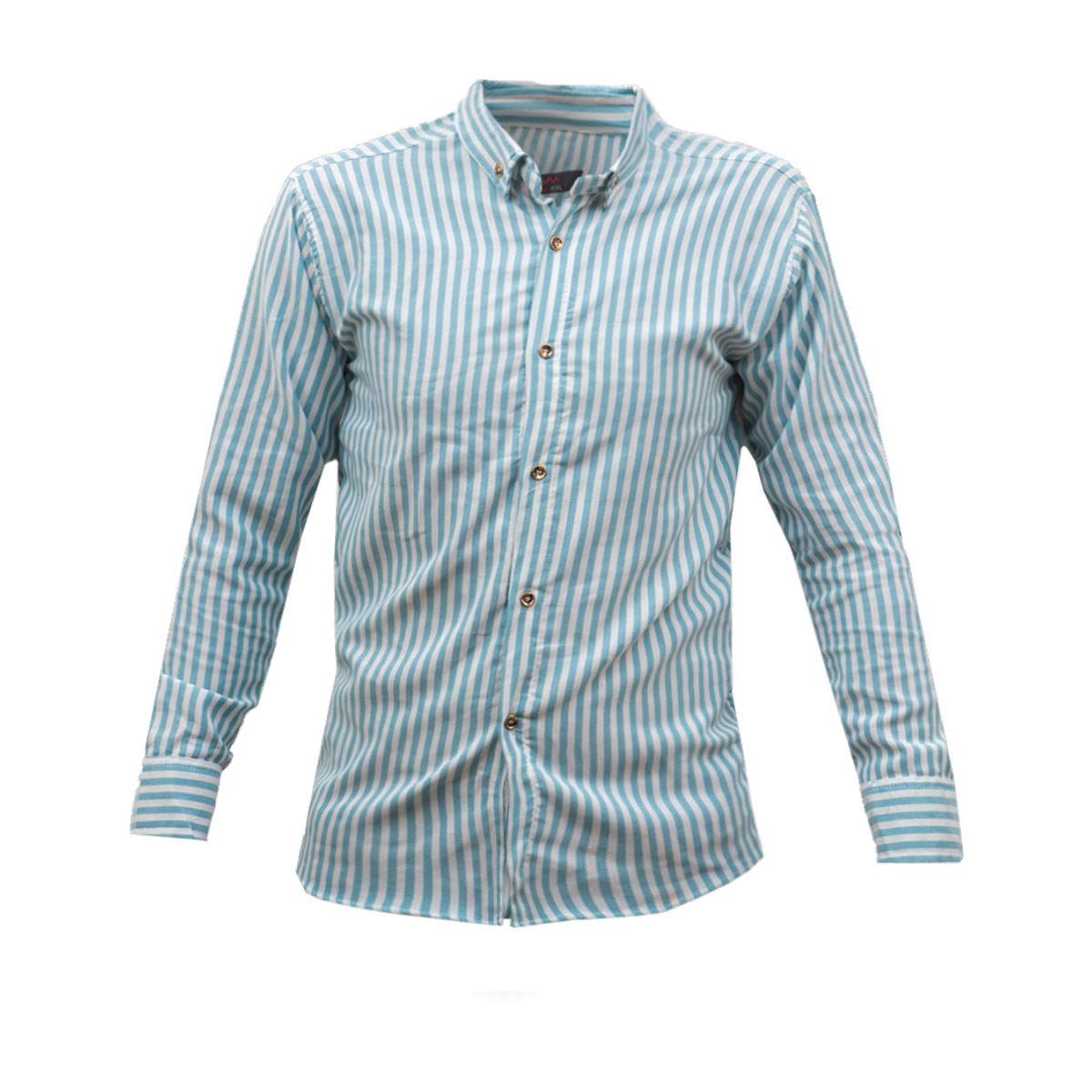 پیراهن راه راه آبی سفید مردانه مدل HAMED