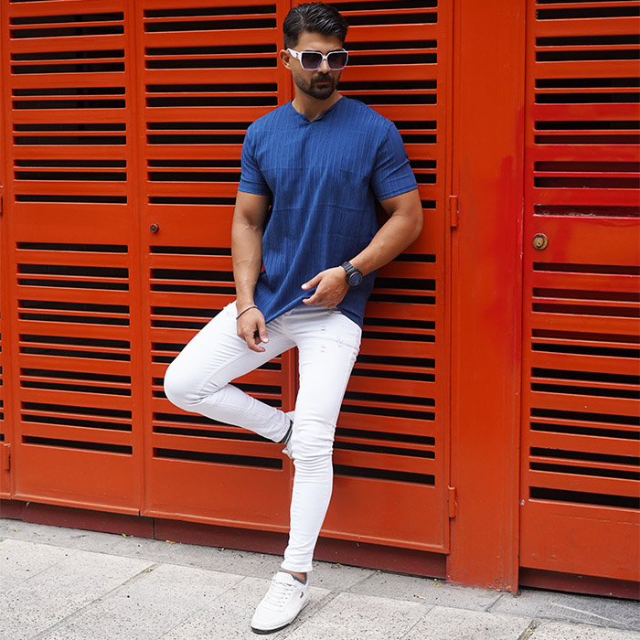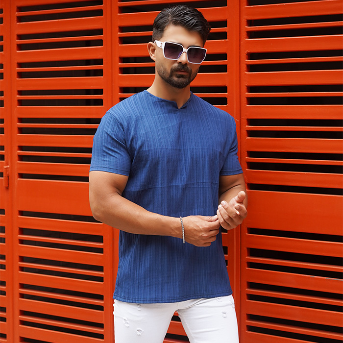تیشرت مردانه آبی آستین کوتاه مدل Bardia