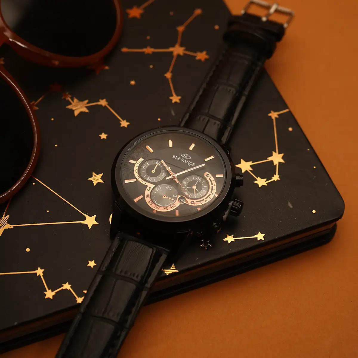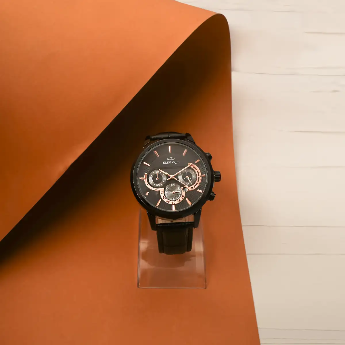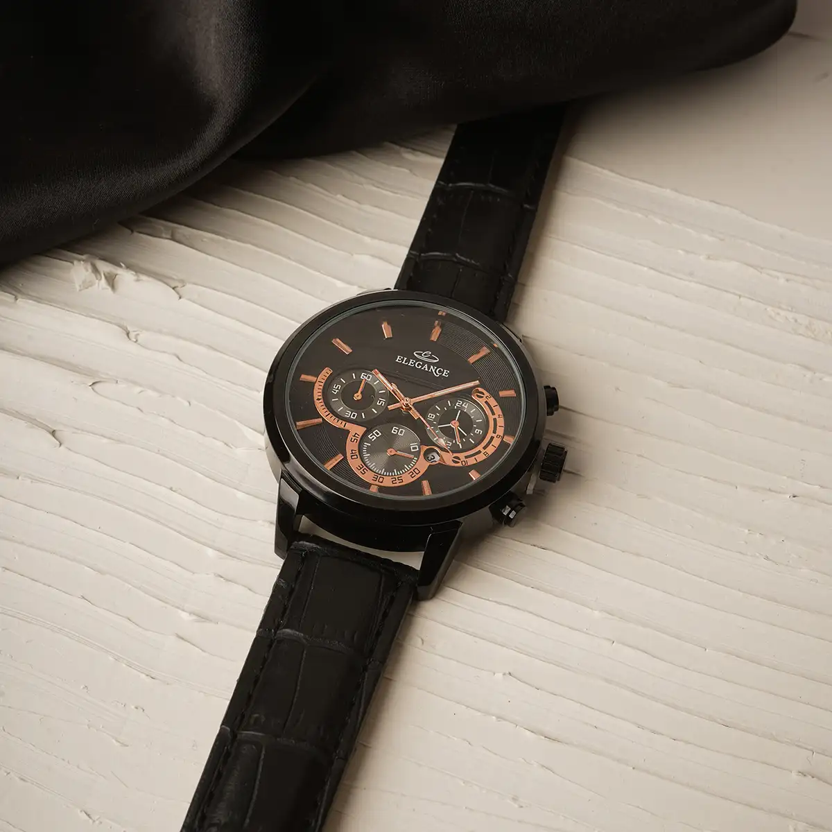 ساعت ELEGANCE مشکی صفحه مشکی مدل B62
