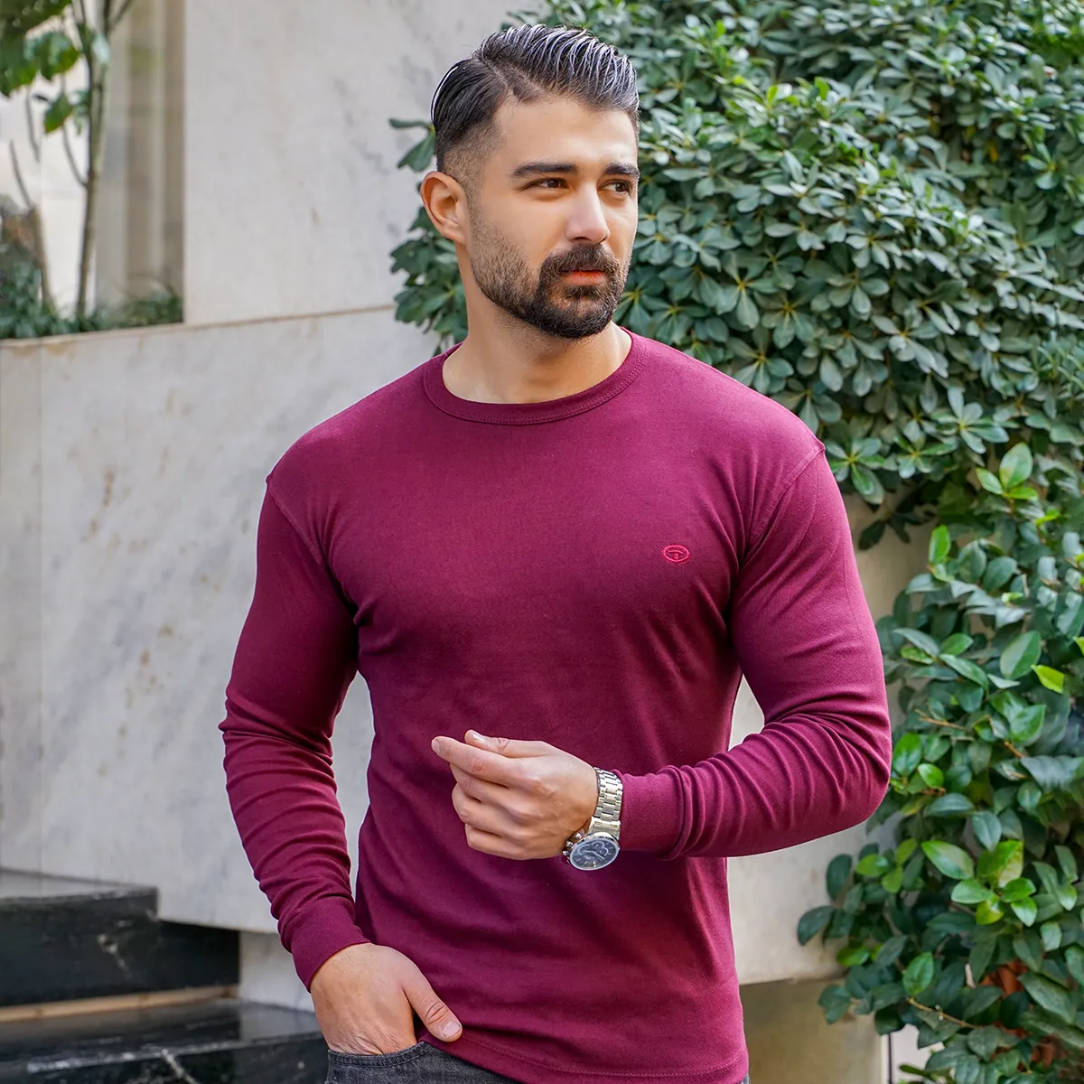 تیشرت مردانه آستین بلند زرشکی مدل Tom Tailor