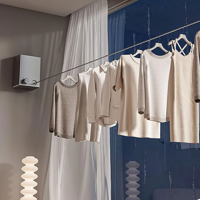 محصول امروز ما یک بند رخت جمع شو آپارتمانی است. این بند رخت دیواری آپارتمانی، یک محصول لوکس، مینیمال و مدرن با بدنه ای از جنس استیل ضد زنگ و پلاستیک می باشد. این محصول دارای یک چرخدنده قدرتمند و ایمن جهت تنظیم فشار و سرعت، به منظور جمع آوری آسان بند فلزی آن است.