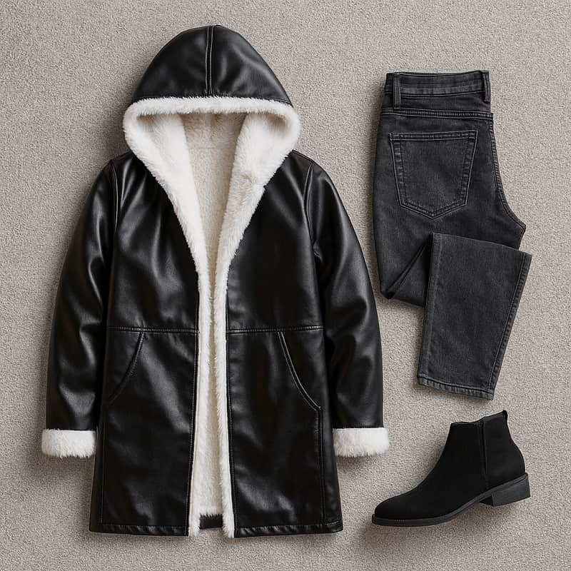 شنل چرم خز سفید زنانه مدل Sara