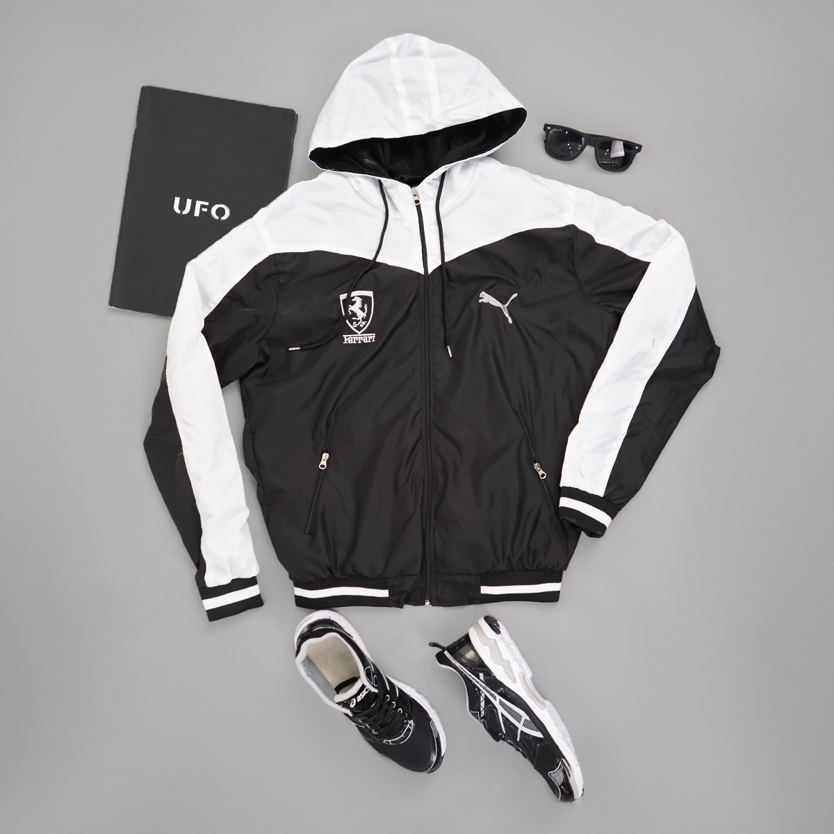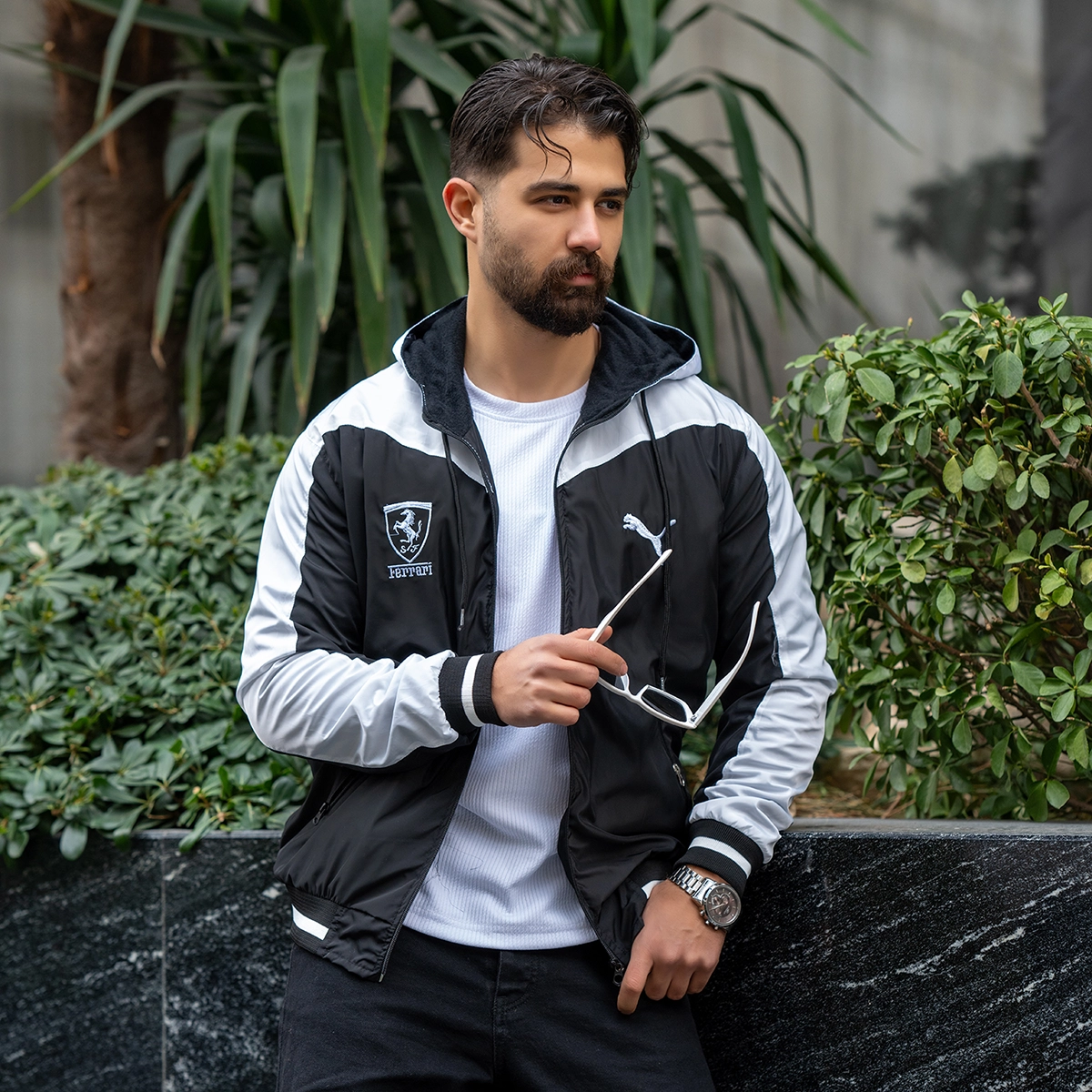 کاپشن مشکی سفید مردانه مدل Ferrari