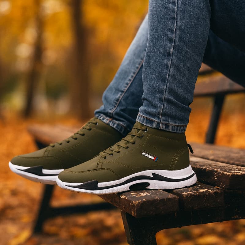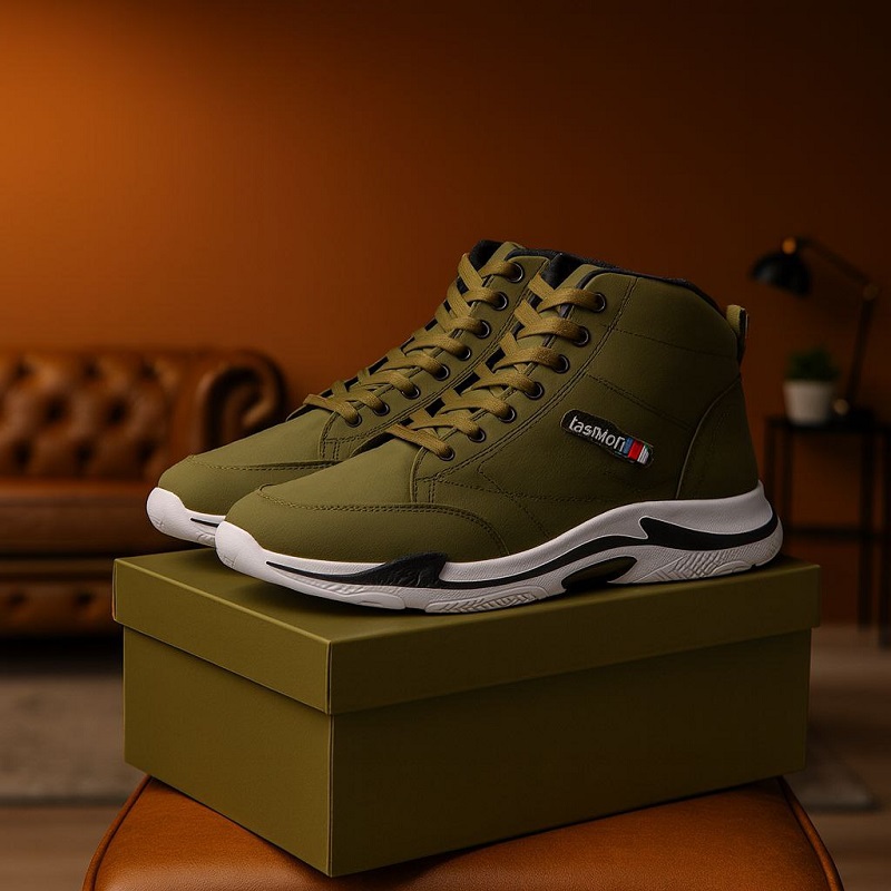 کفش ساقدار مردانه زیتونی EMTO