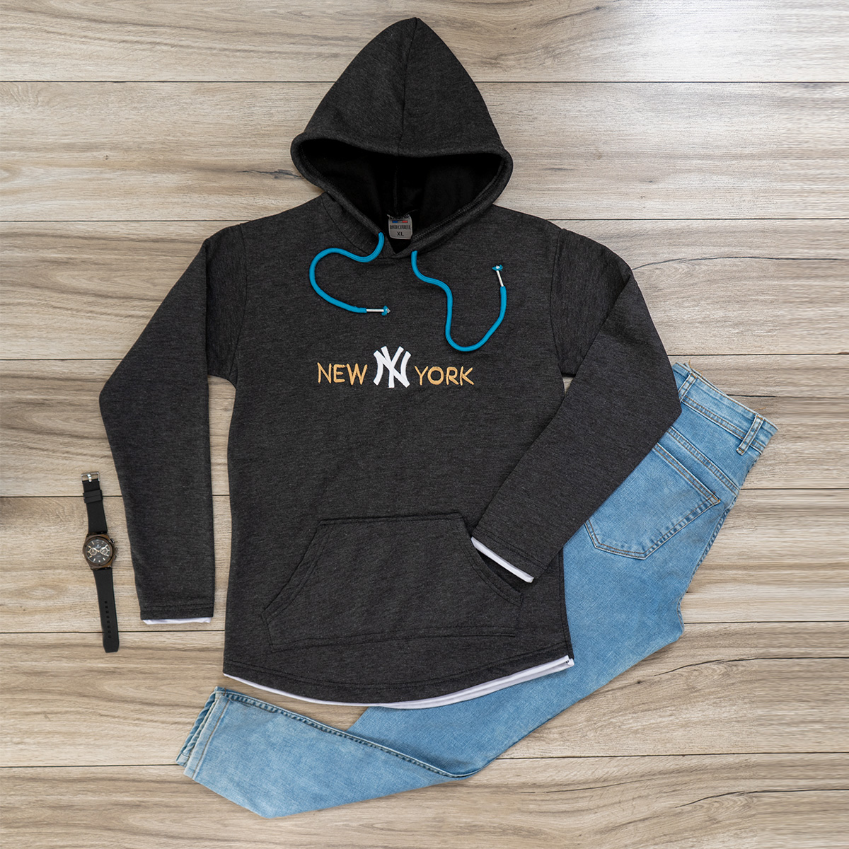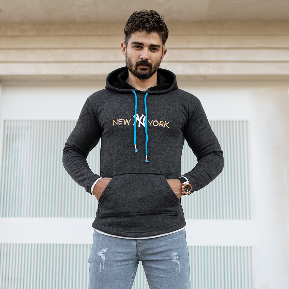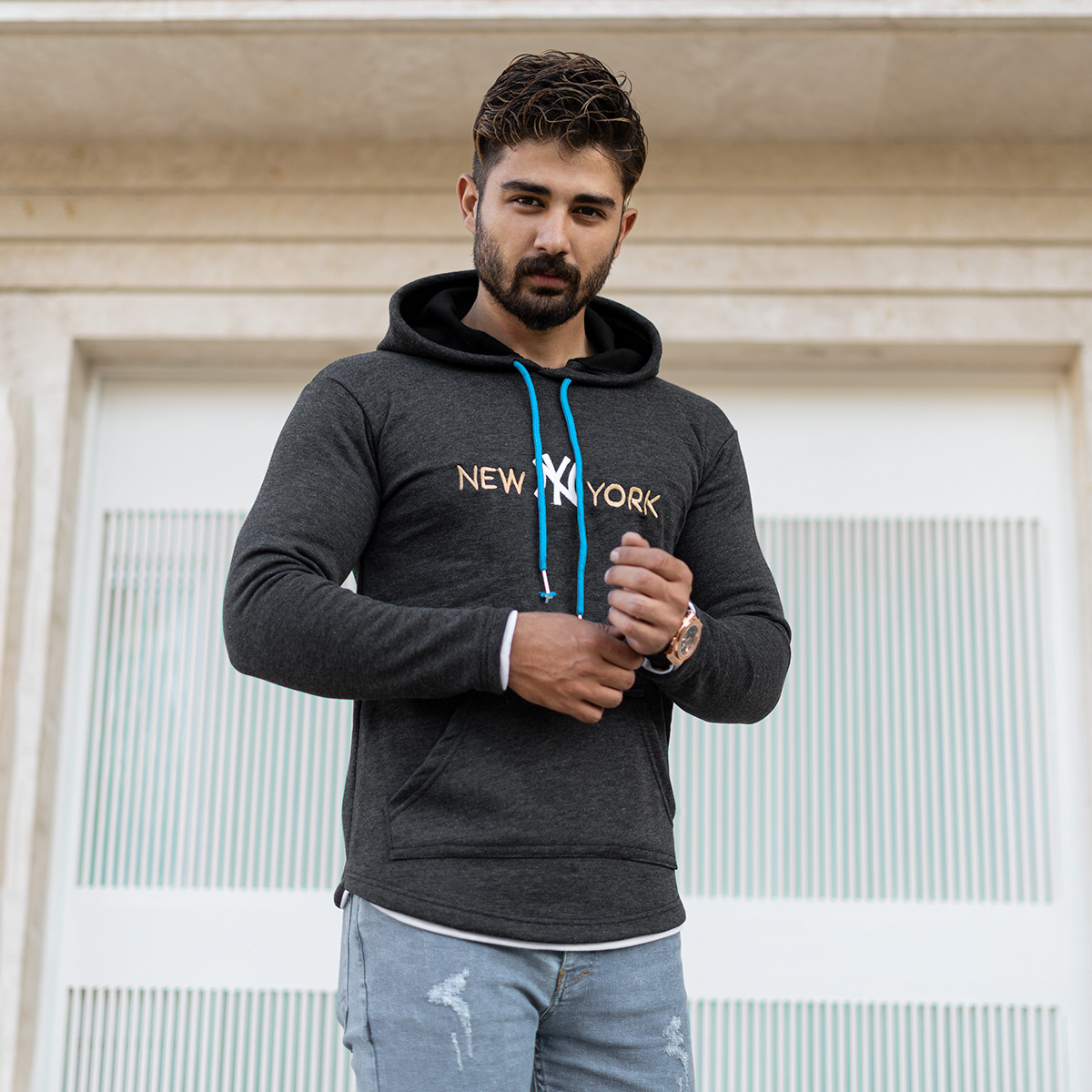 هودي مردانه مدل new york رنگ طوسي