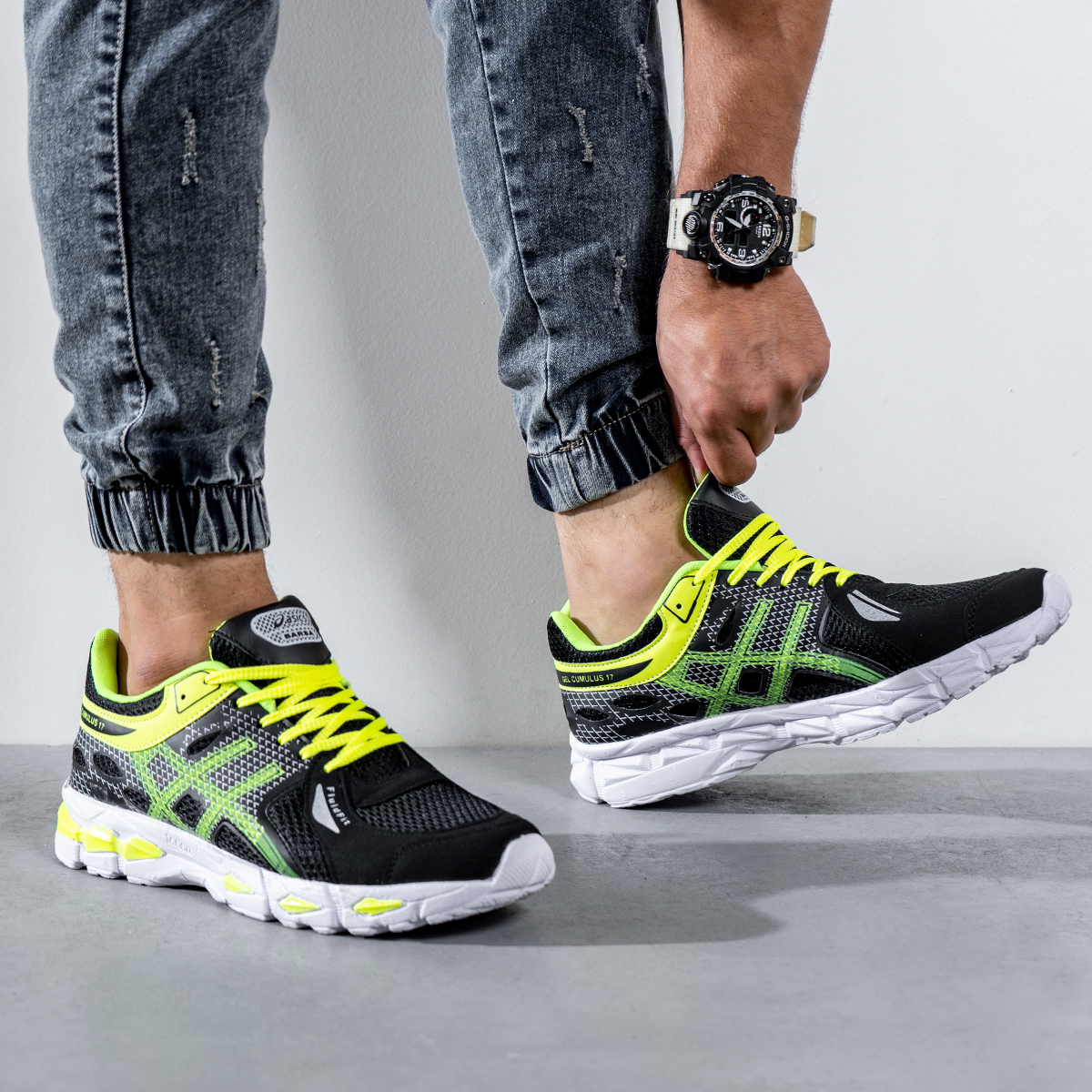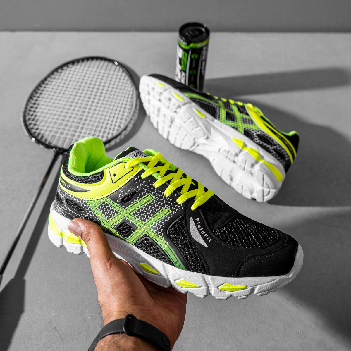 كفش ورزشي اسيكس مردانه مشکی سبز مدل kayano