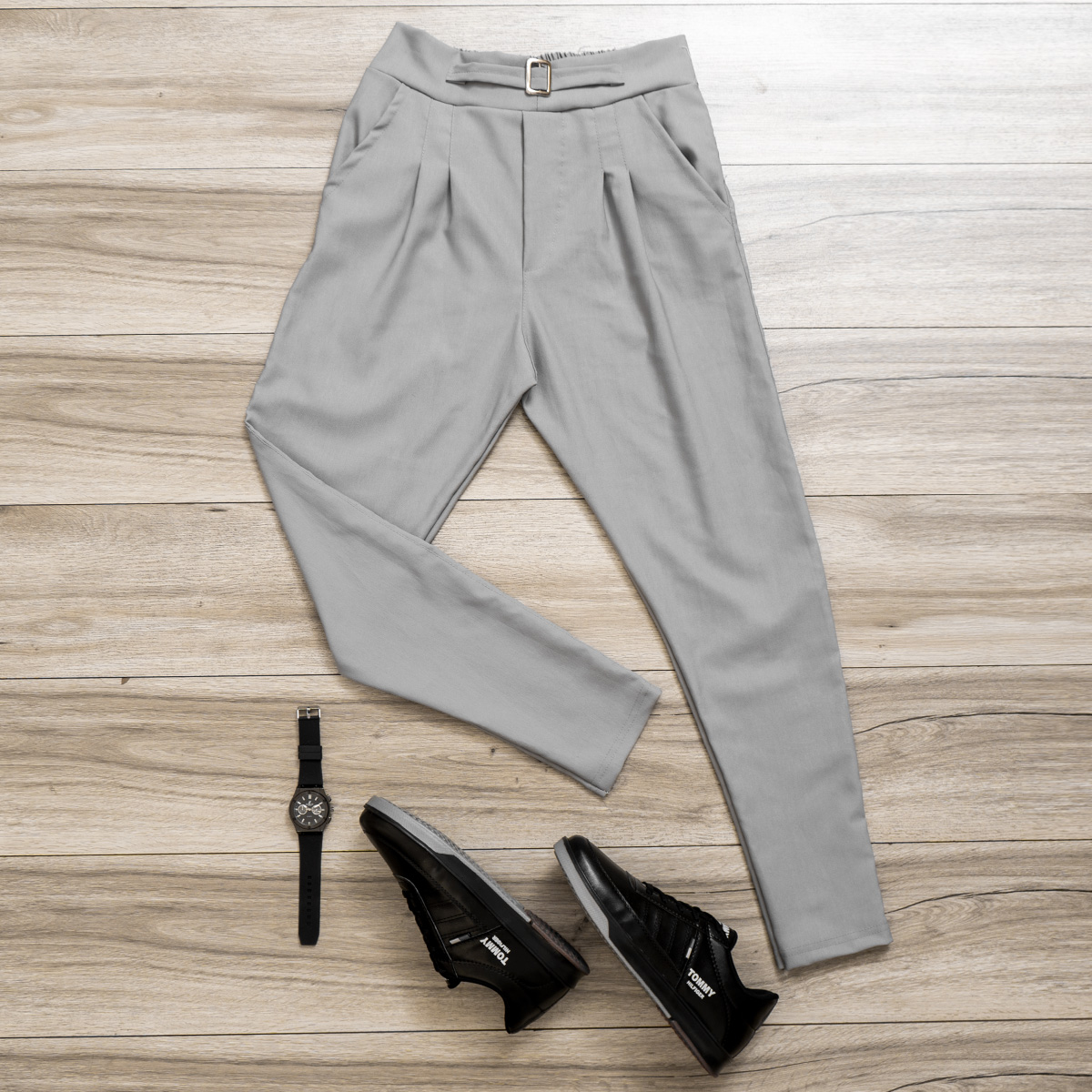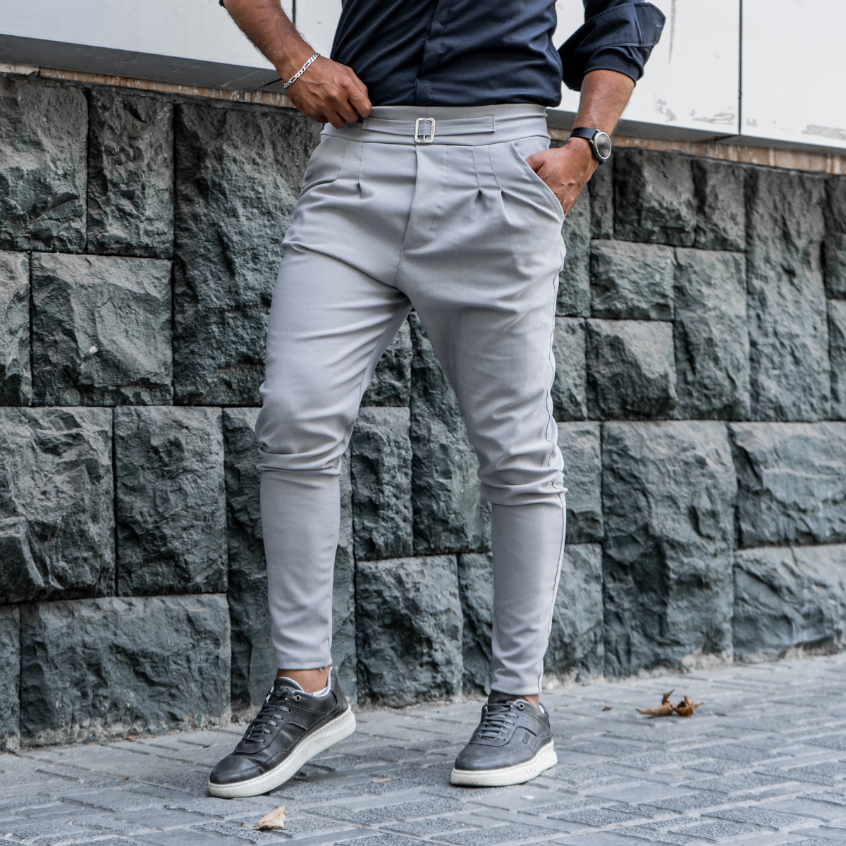 شلوار اسلش سگک دار مردانه طوسی روشن مدلPartiv